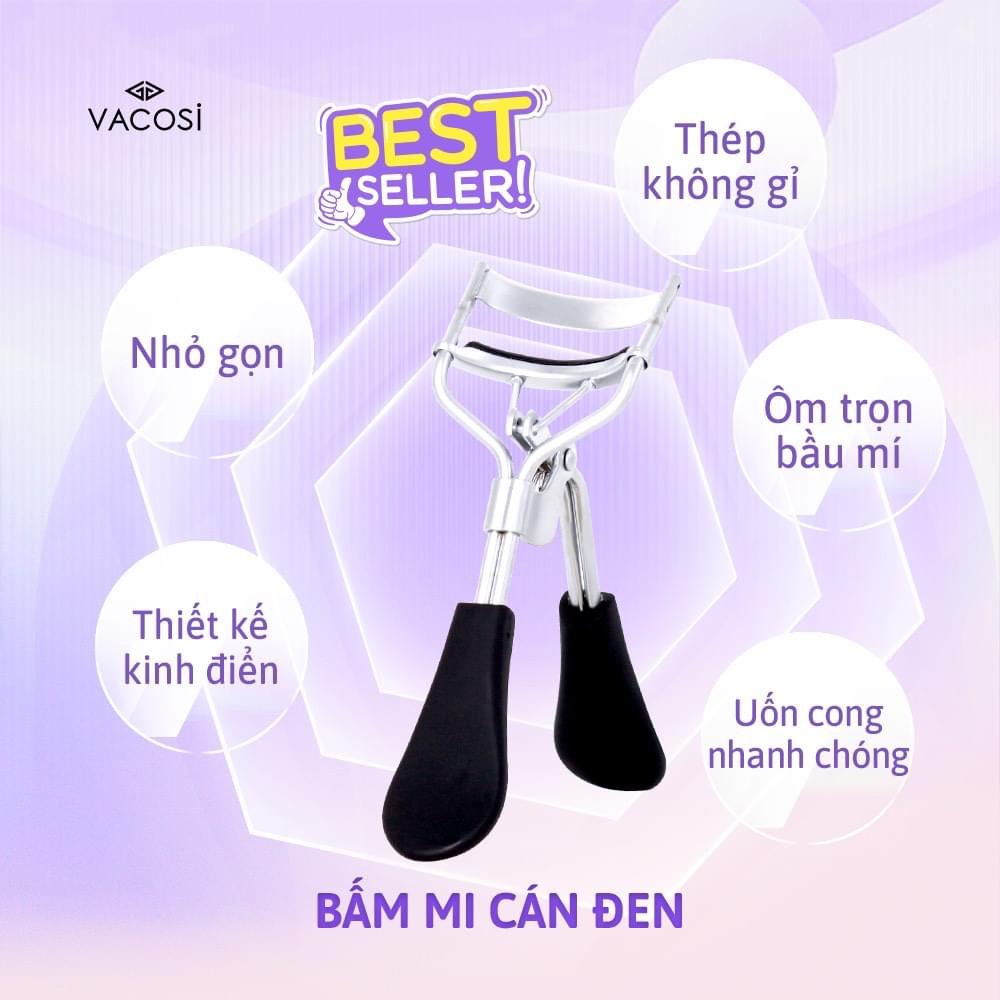 BM03 - Bấm Mi VACOSI Modern Lash Curler (Cán Đen) là bấm mi đến từ thương hiệu VACOSI với chất liệu thép không rỉ kết hợp cùng miếng đệm từ silicon cao cấp giúp uốn cong hàng mi từ gốc đến ngọn một cách hoàn hảo.