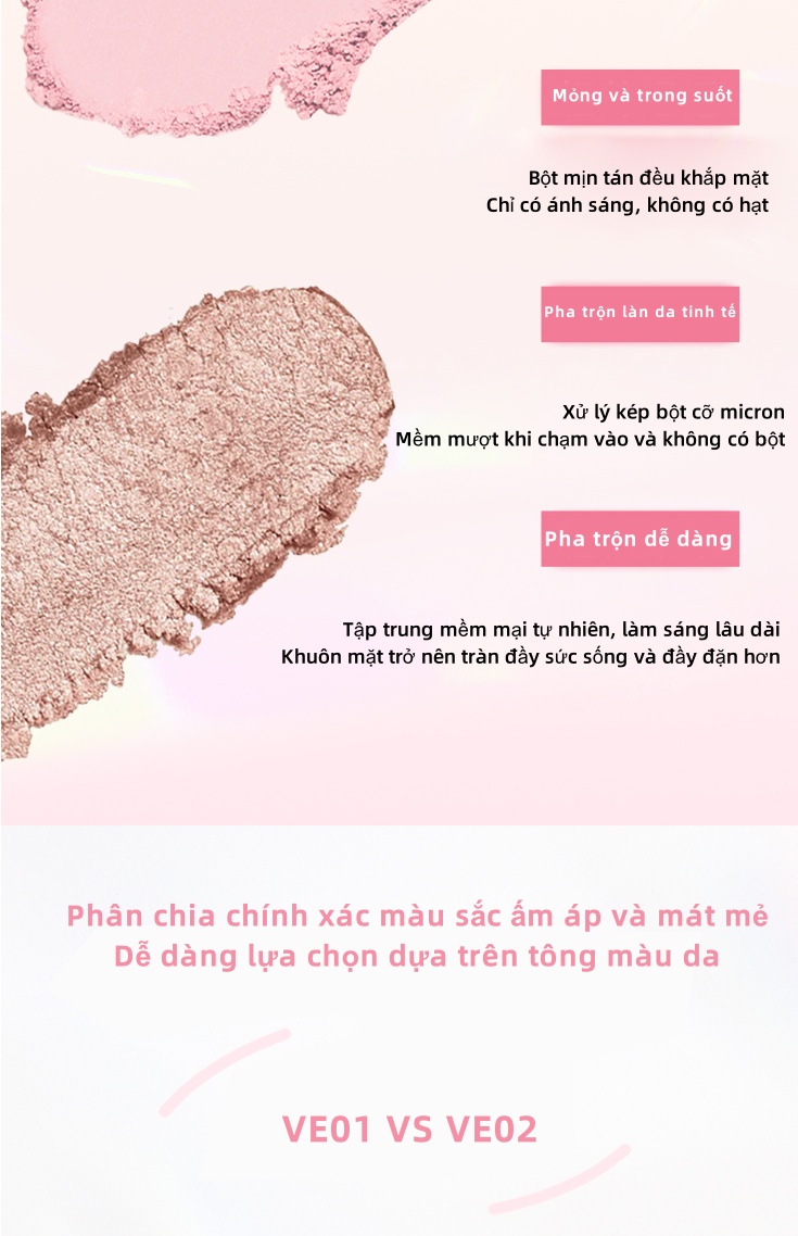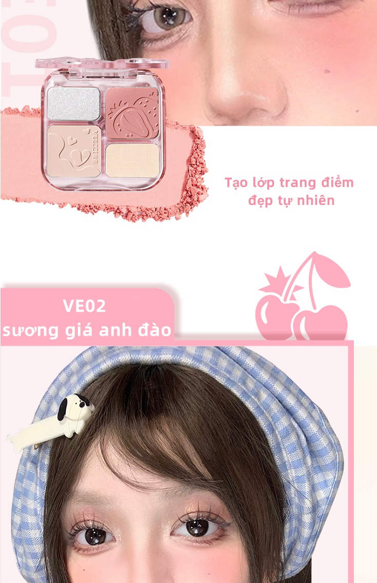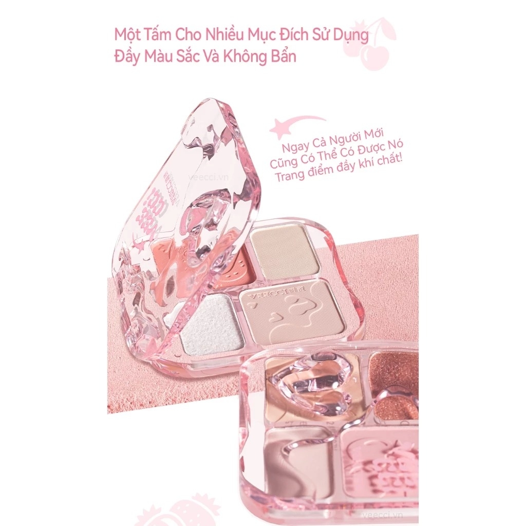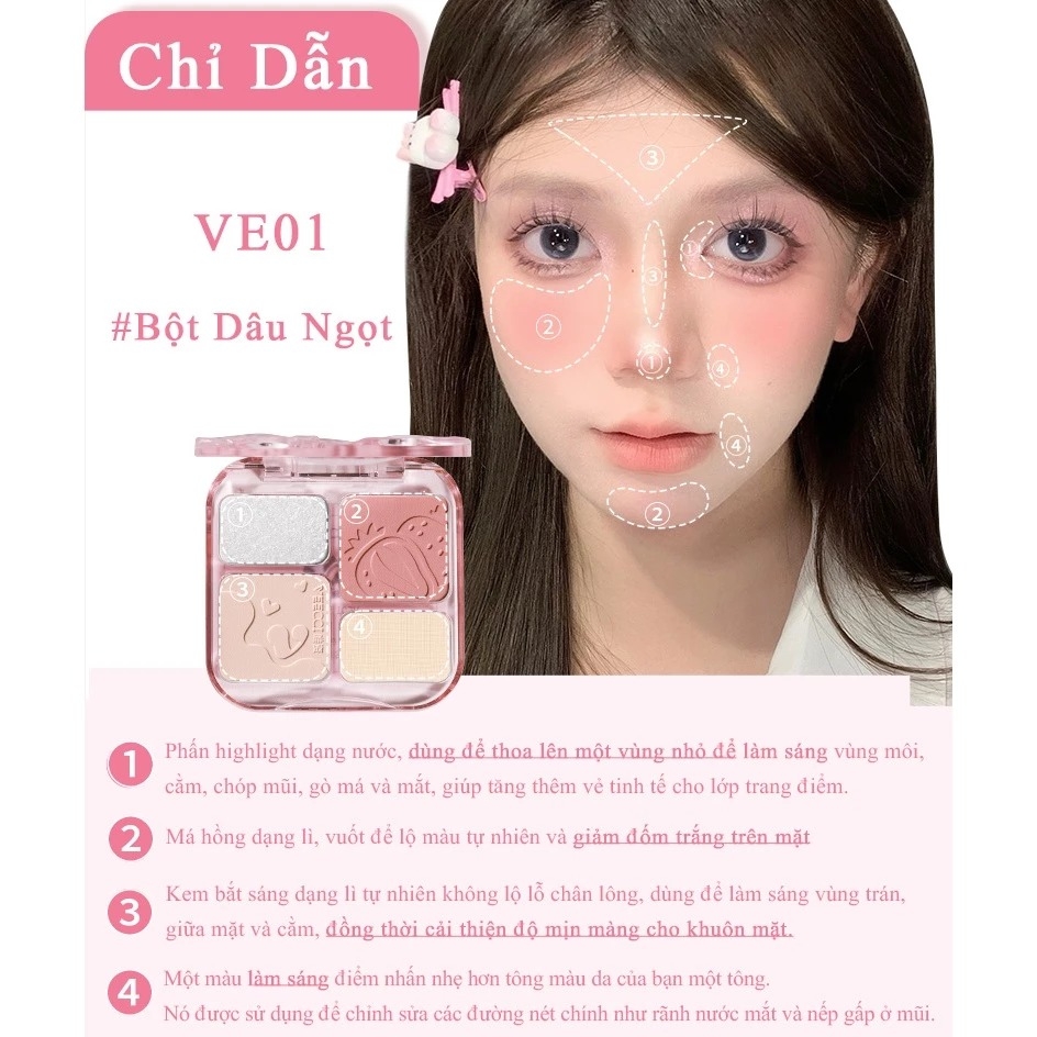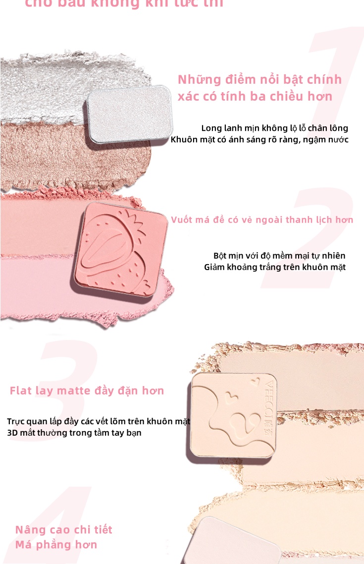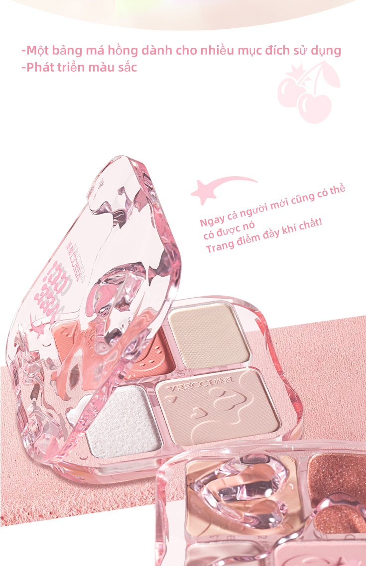 🌟 Bảng màu Phấn Má Hồng Và Bắt Sáng Highlight VEECCI 4 Ô Tự Nhiên Lâu Trôi