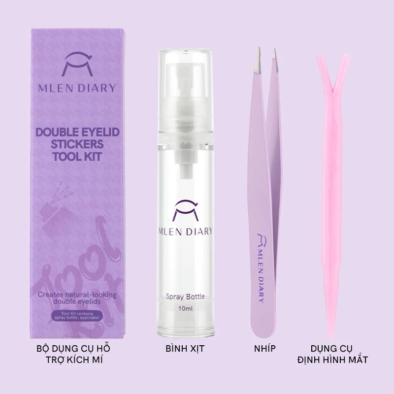 Đó cũng là lý do Bộ Dụng Cụ Kích Mi Mlen Diary Double Eyelid Stickers Tool Kit ra đời, mang đến một trải nghiệm mới mẻ: dễ thao tác, hiệu quả tức thì, phù hợp cho cả người mới tập makeup lẫn những ai đã quen với việc sử dụng miếng dán mí.