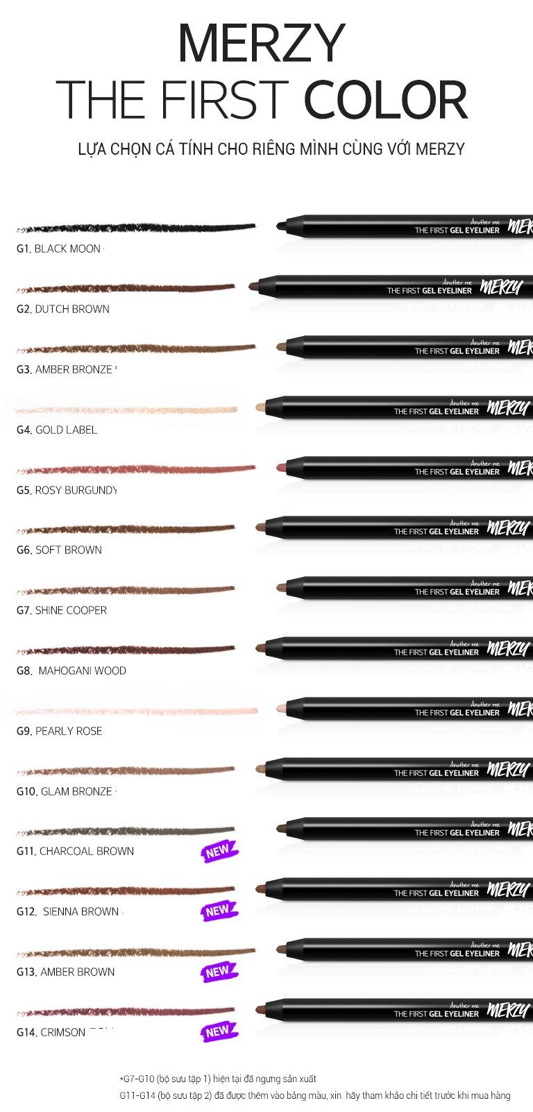 Chì Kẻ Mắt Dạng Gel Lâu Trôi Merzy The First Gel Eyeliner hiện đã có các màu sau: