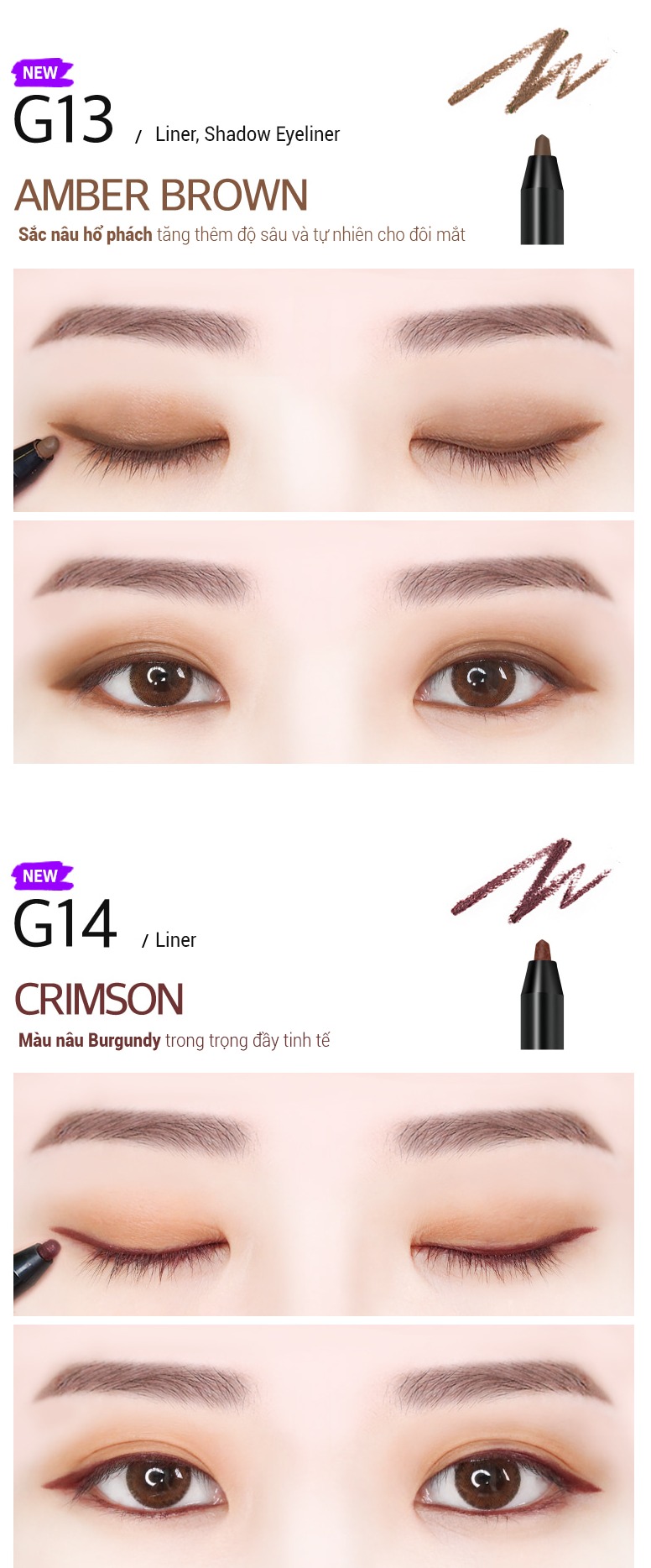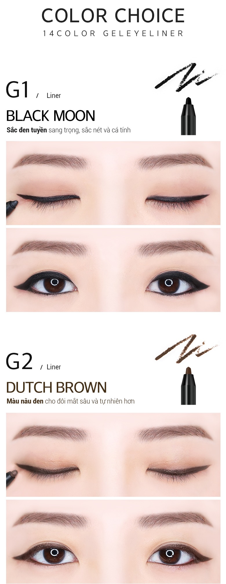 🍀 Eyeliner có bảng màu đa dạng giúp bạn tự tin thể hiện cá tính của riêng mình, gồm những gam màu trẻ trung, xinh xắn và dễ phối hợp các bước trang điểm khác nhau, trang điểm mắt trở nên dễ dàng hơn, thu hút mọi ánh nhìn