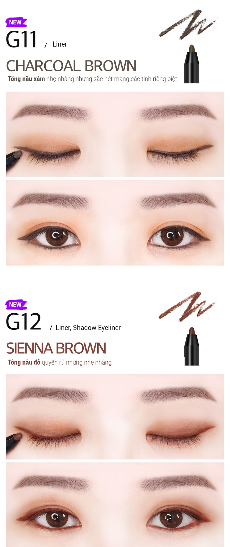 🍀 Đặc biệt có chức năng kép 2 trong 1 đa năng, vừa có thể sử dụng làm eyeliner vừa sử dụng thay thế phấn mắt
