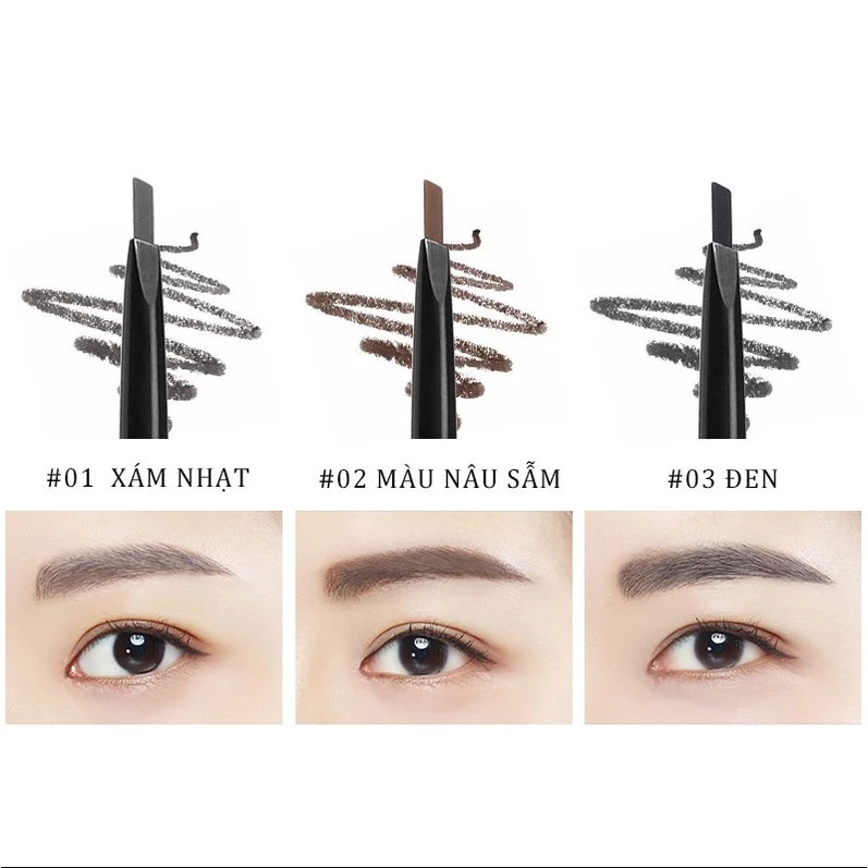 🍀 Màu sắc: Hiện tại chì kẻ mày đang có 3 màu sắc chính cho các bạn lựa chọn gồm: