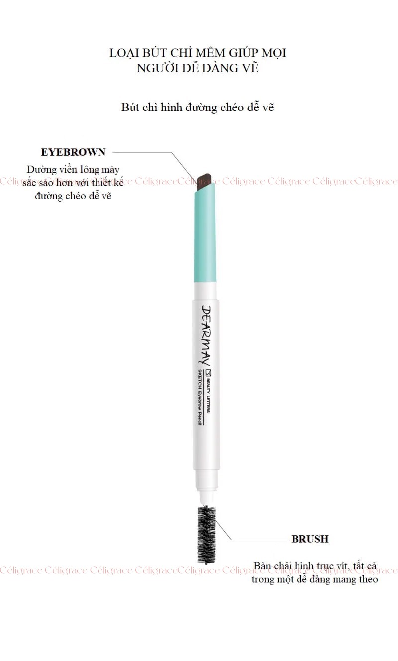 - Chì kẻ mày Dearmay Sketch Eyebrow Pencil (Mẫu cũ) có 5 màu:
