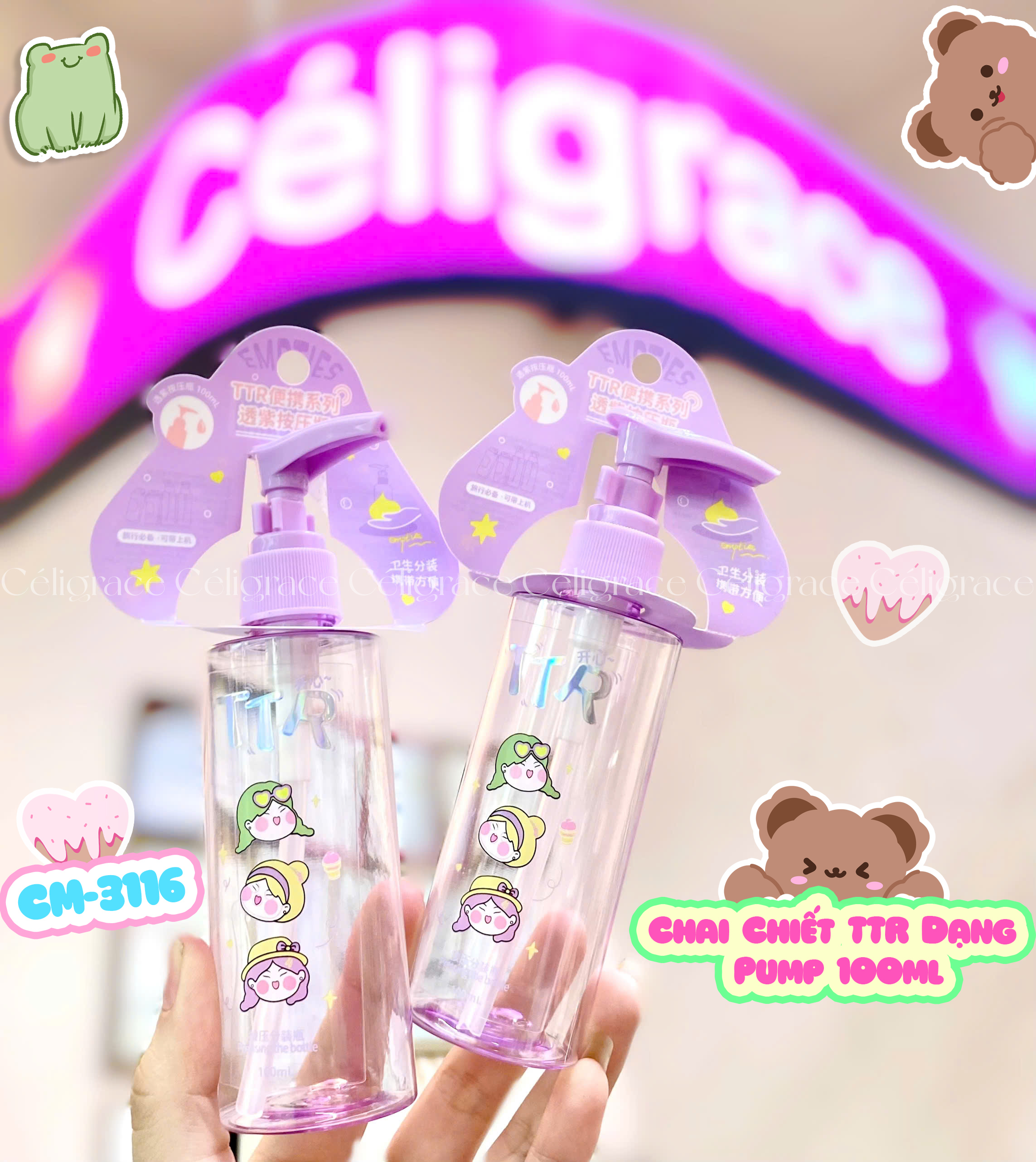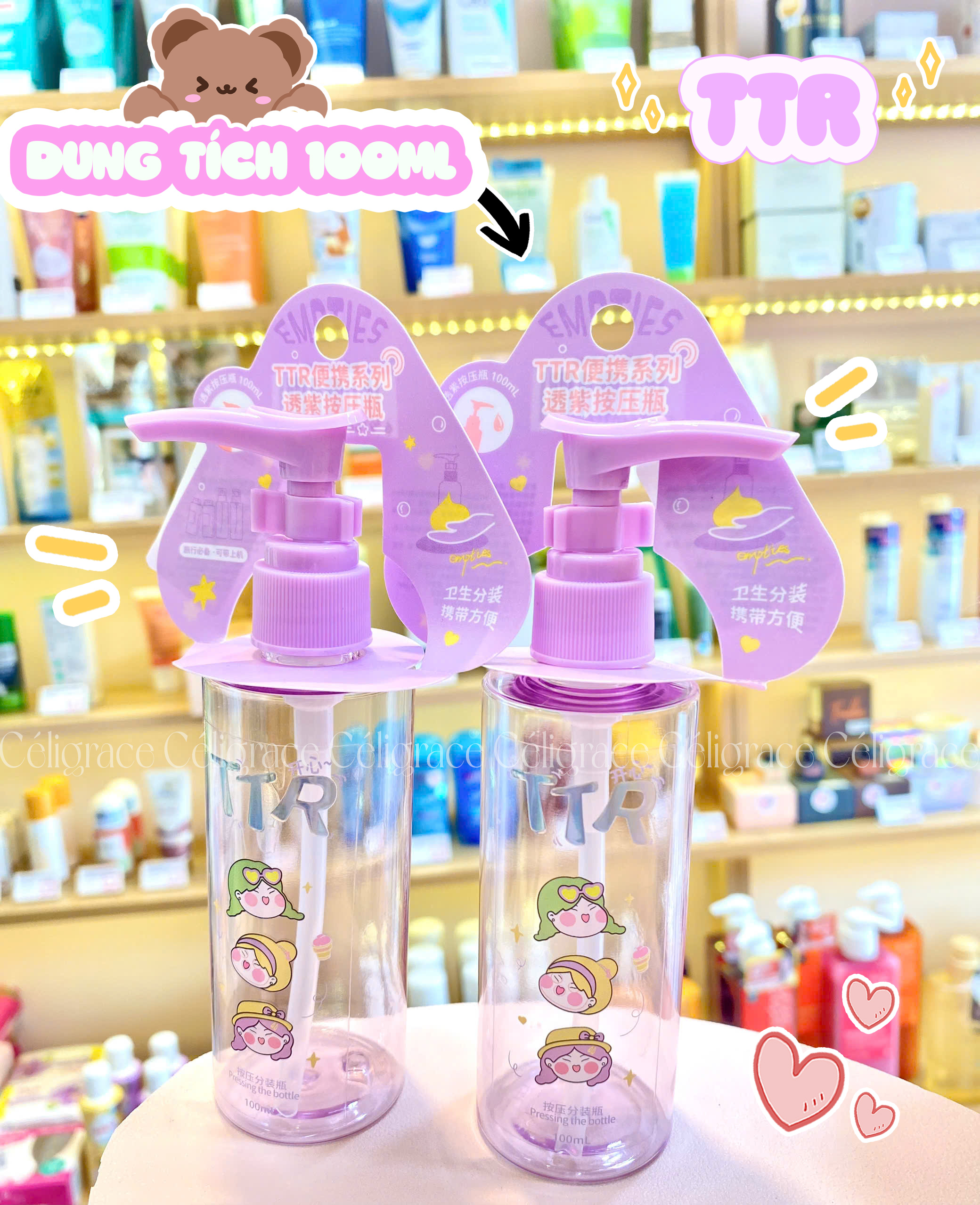 Chai Chiết Mỹ Phẩm Tiện Lợi TTR Dạng Pump 100ml CM-3116 là phụ kiện chiết mỹ phẩm đến từ thương hiệu TTR (CAMINE). Chai chiết mỹ phẩm du lịch có thiết kế nhỏ gọn, tiện lợi với chất liệu nhựa cao cấp giúp bạn mang theo mỹ phẩm cần dùng, nhanh chóng, không cần phải mang quá nhiều sẽ gây cồng kềnh. Đồng thời, các sản phẩm rất chắc chắn nên bạn có thể yên tâm khi mang theo.