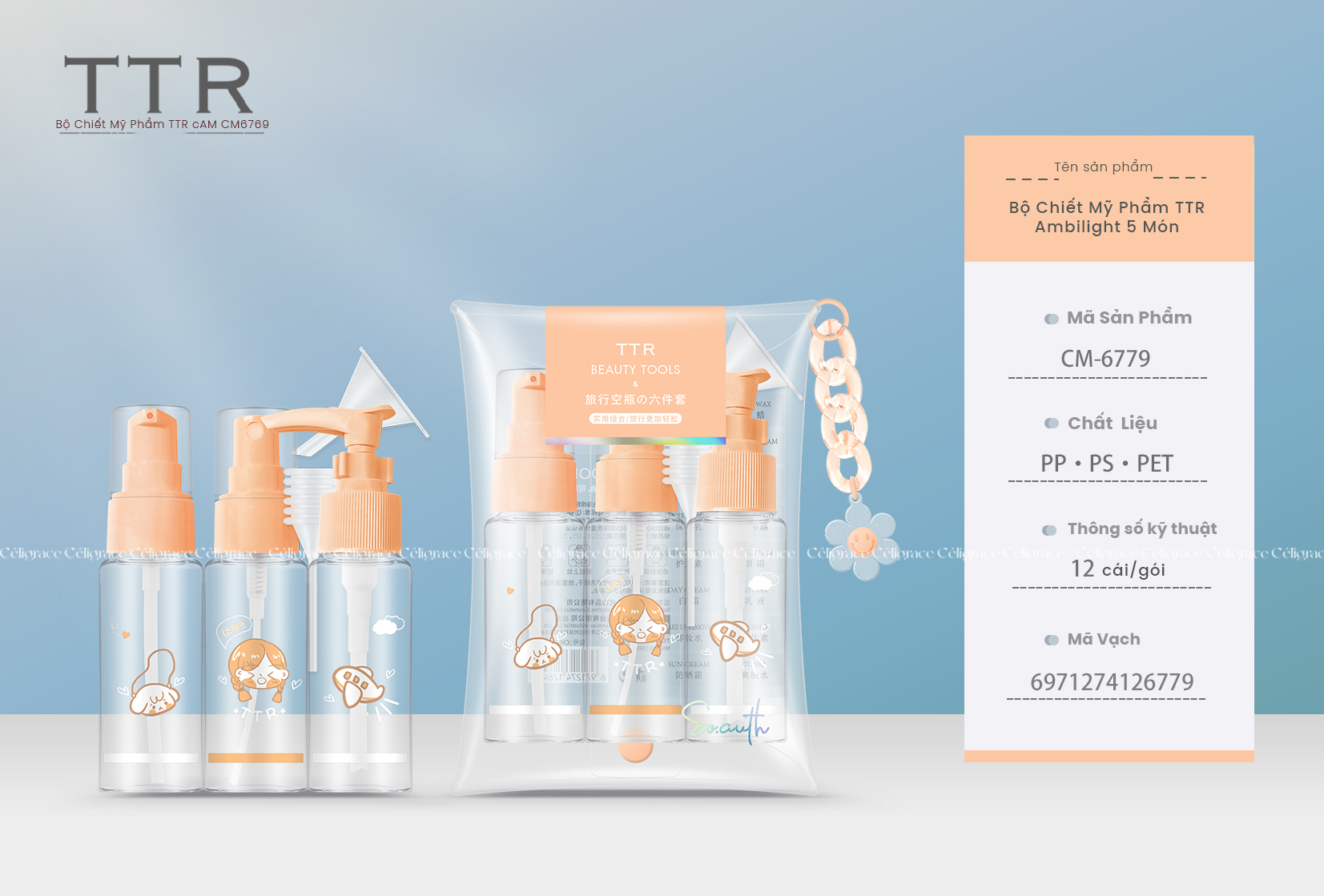 CM-6779 [SET 5 MÓN] - Bộ Chiết Mỹ Phẩm TTR Ambilight (Cam-Túi Bấm)