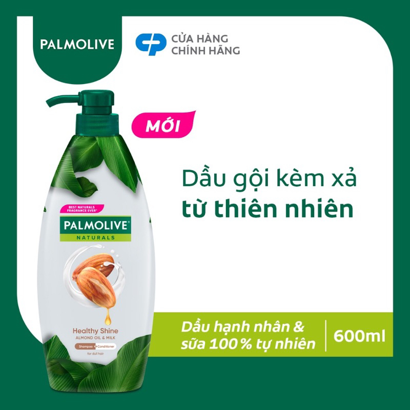- Dầu gội Palmolive kèm dầu xả chiết xuất thiên nhiên từ dầu hạnh nhân và sữa cho tóc Óng Ả Khỏe Đẹp ( chai màu trắng )