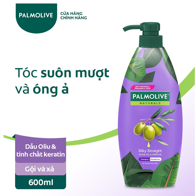 - Dầu gội Palmolive kèm dầu xả 2 trong 1 Suôn Mượt Óng Ả từ Keratin và Dầu Olive 600ml (chai màu tím)