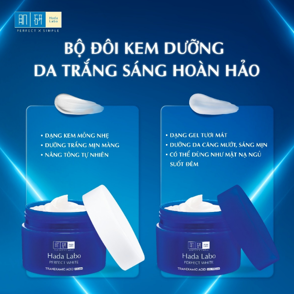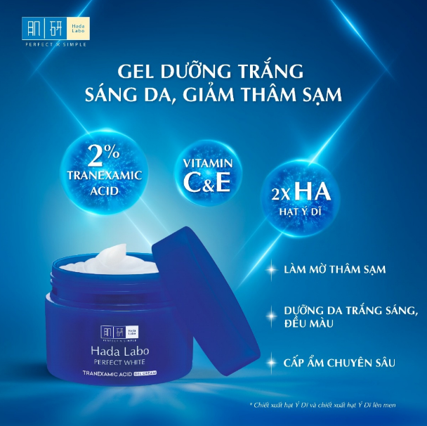 Gel Dưỡng Hada Labo Làm Trắng Da, Giảm Thâm Nám Perfect White Tranexamic Acid Gel Cream 50g là kem dưỡng trắng da thuộc thương hiệu Hada Labo đến từ Nhật Bản. Sản phẩm khóa ẩm chuyên sâu, dưỡng da sáng rạng rỡ, giảm thâm sạm sau 7 ngày.