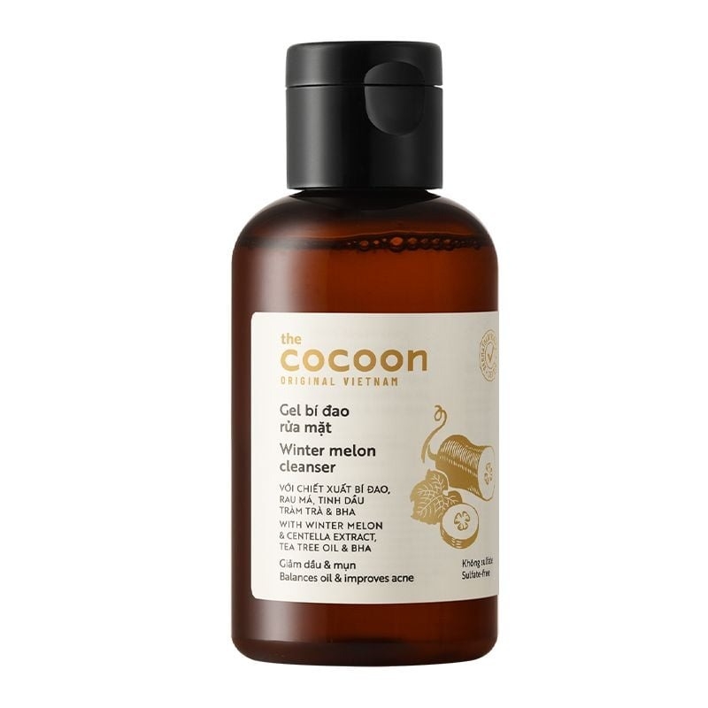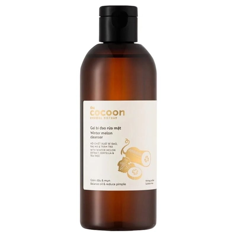 Gel Rửa Mặt Cocoon Bí Đao Hỗ Trợ Giảm Dầu Và Mụn Winter Melon Cleanser là gel rửa mặt với các thành phần gồm bí đao, rau má, tràm trà, bổ sung thêm vitamin B3, B5 và Betaine và có độ pH 5.5 giúp làm sạch sâu bụi bẩn và dầu thừa, ngăn ngừa hình thành mụn ẩn mà vẫn giữ được độ ẩm mịn tự nhiên và không gây khô căng da sau khi sử dụng thuộc thương hiệu mỹ phẩm thuần chay Cocoon đến từ Việt Nam.