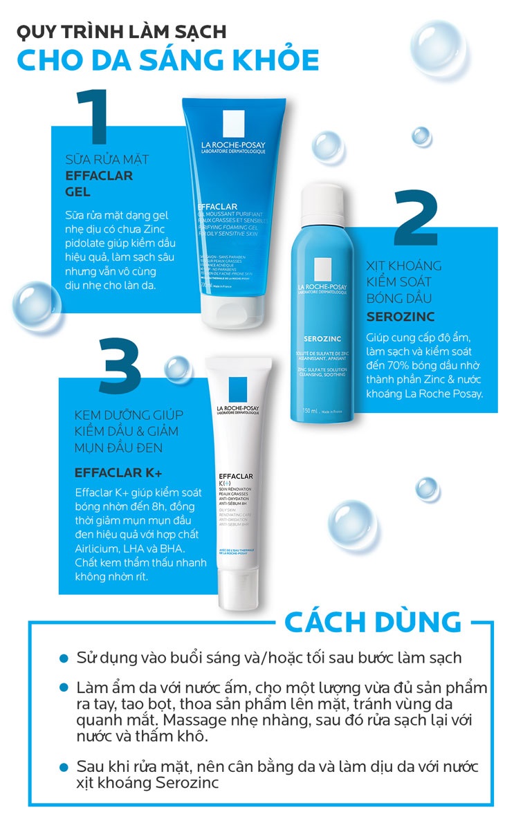 🍀 Gel rửa mặt cho da dầu gel Effaclar Gel có công thức được lựa chọn kĩ càng với các thành phần làm sạch dịu nhẹ phù hợp cho da dầu và da mụn nhạy cảm. Nhẹ nhàng loại bỏ tạp chất và bã nhờn dư thừa. Giảm khả năng hình thành mụn đầu đen và giảm bóng nhờn hiệu quả, mang lại làn da sạch thoáng