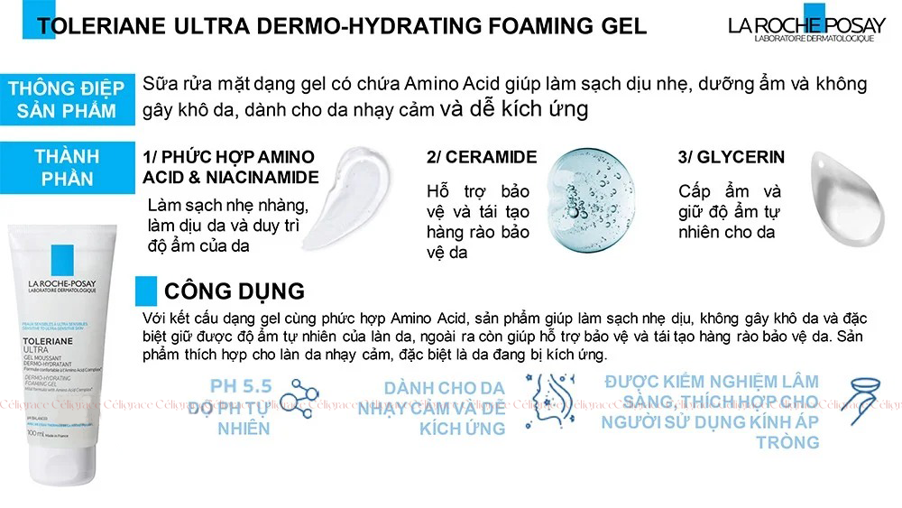 🍀 Dòng sữa rửa mặt không chứa xà phòng với độ pH cân bằng 5.5 duy trì độ pH tự nhiên của da, làm dịu, cấp nước và củng cố hàng rào bảo vệ da.