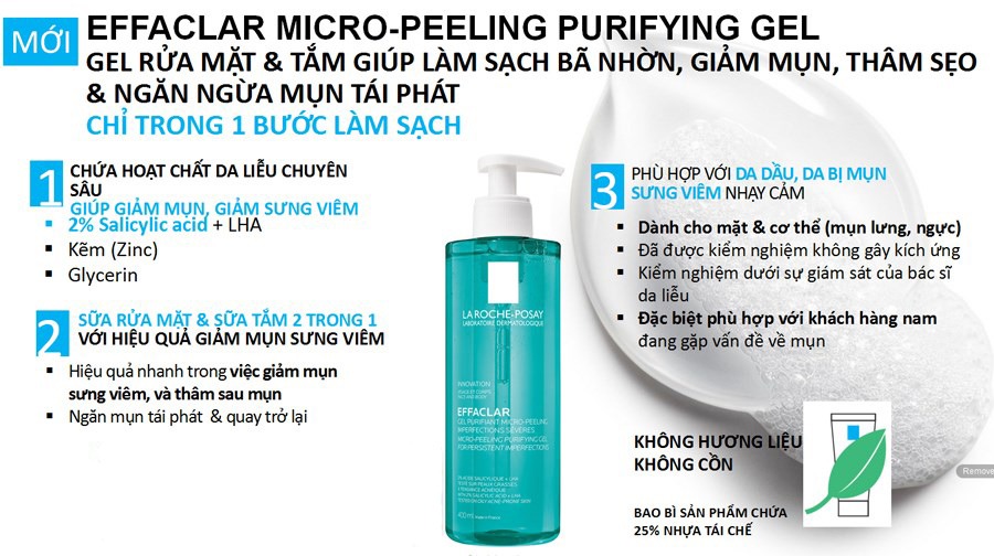 🍀 Kết cấu dạng gel trong suốt, tạo bọt nhẹ. Làn da sẽ nhanh chóng cảm nhận được sự tươi mát và dịu nhẹ của nước khoáng ngay khi sử dụng. Được các chuyên gia da liễu trên toàn thế giới khuyên dùng