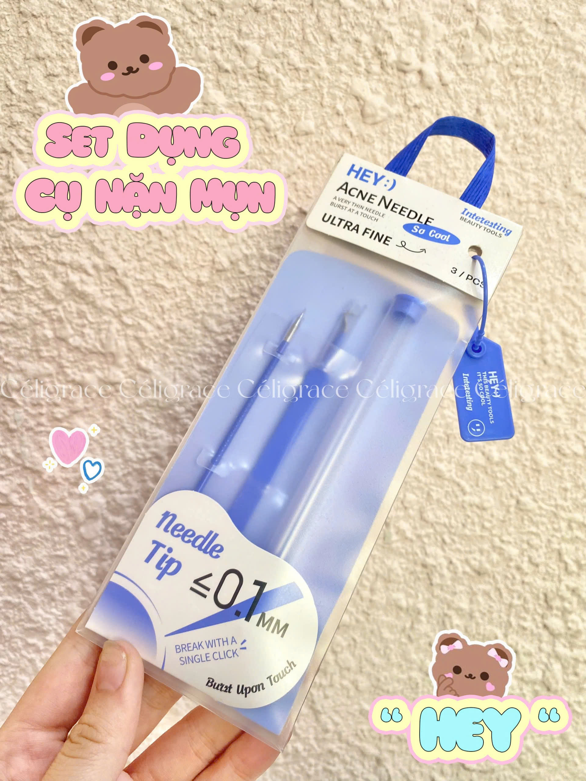 H-9004 - Set Dụng Cụ Nặn Mụn HEY Chuyên Dụng Kèm Hộp Đựng Acne Needle 30g (2 Cây - Xanh)