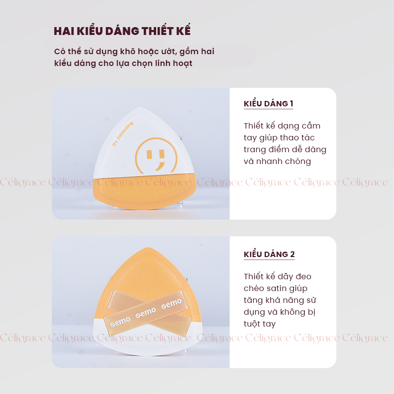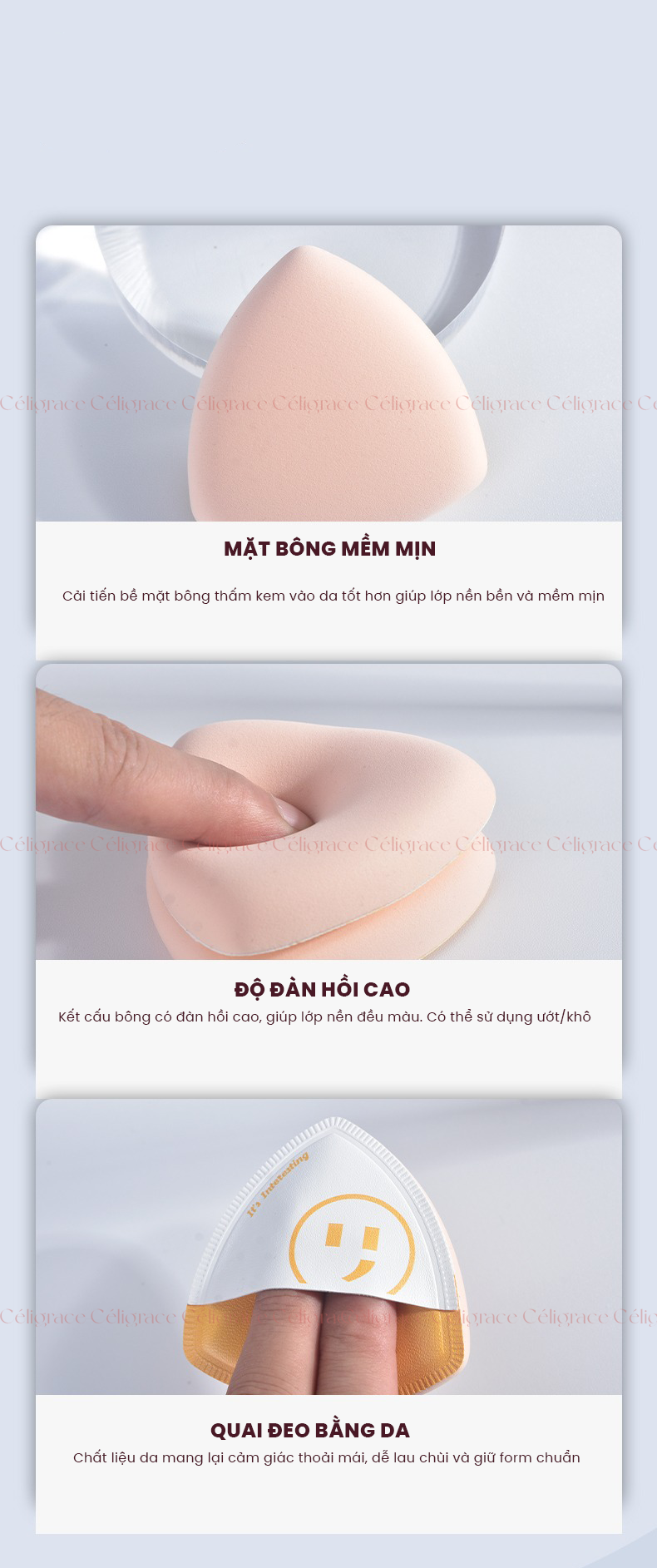 🍀 Set gồm 2 bông mút hình tam giác, nhỏ gọn, tiện lợi, cầm vừa tay giúp bạn dễ dàng sử dụng, dễ mang theo.