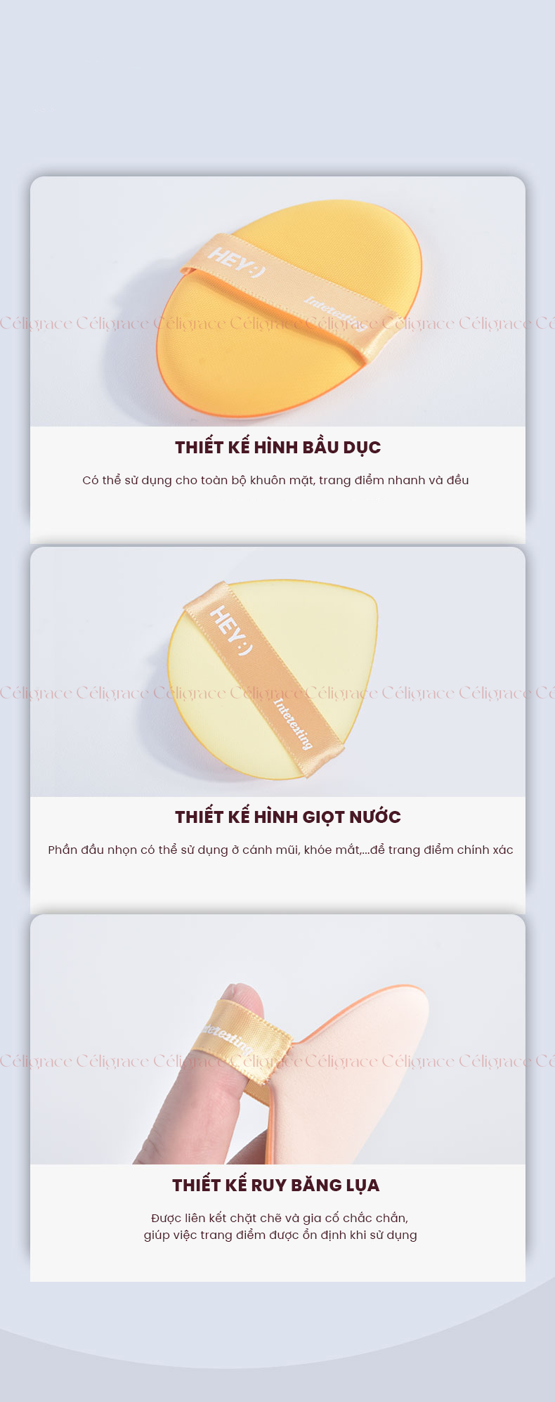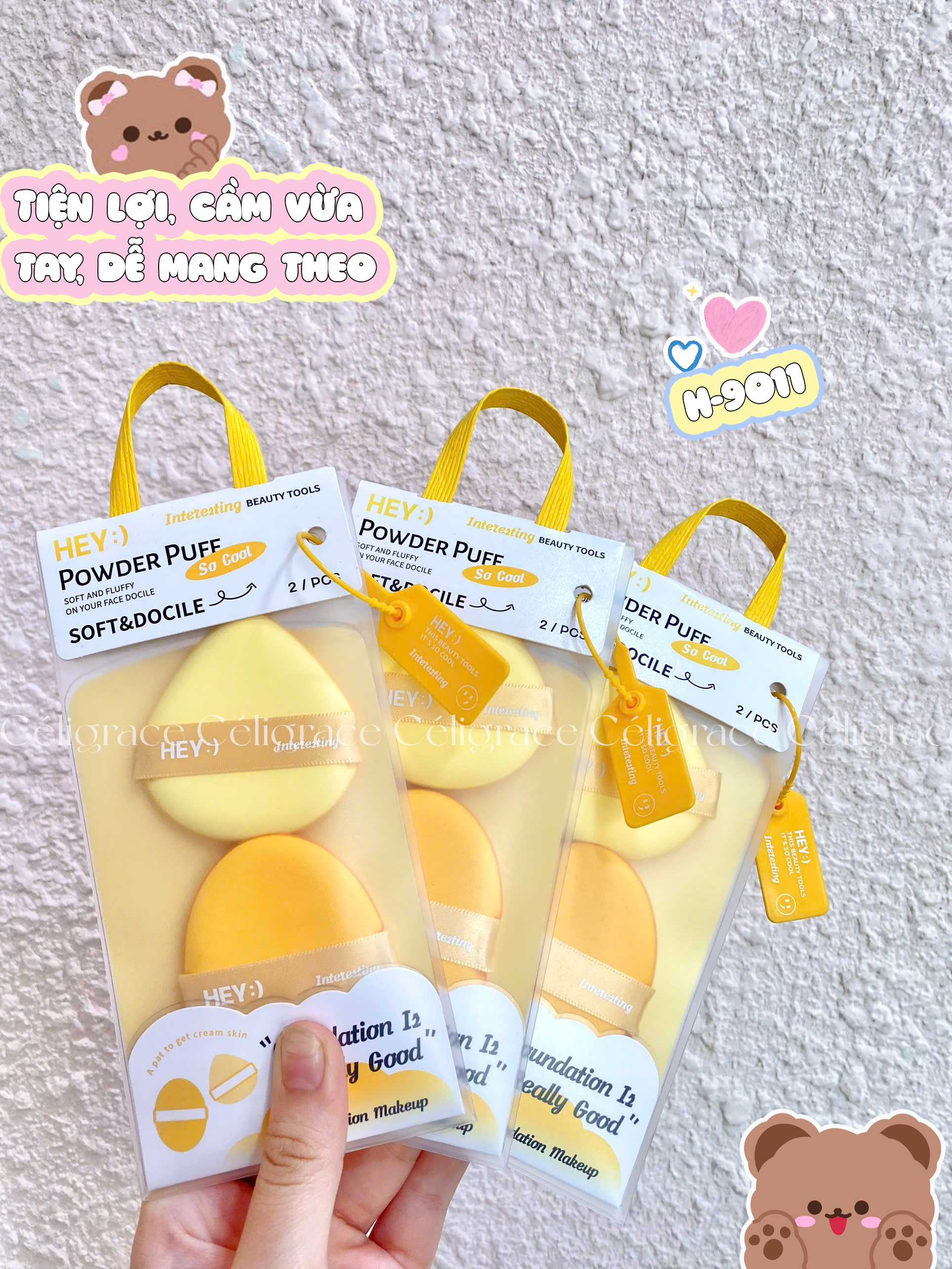 H-9011 - Set 2 Bông Mút Tán Kem Nền, Phấn Nước HEY Powder Puff là mút tán kem nền thuộc thương hiệu thương hiệu HEY được sử dụng để tán phấn nước, kem nền, BB Cream, cushion,... với chất liệu siêu mềm, giúp tăng cường độ bám dính của hạt phấn lên da, đem lại lớp nền mỏng mịn, tự nhiên suốt cả ngày dài.