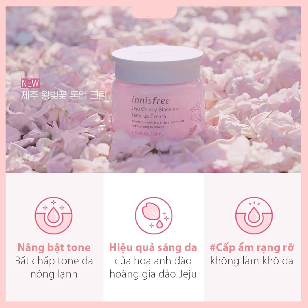 🍀Cánh hoa anh đào từ Jeju với dưỡng chất giúp nâng tông da tức thì, đồng thời dưỡng sáng da từ bên trong giúp bạn tự nhiên với làn da mộc. Có thể sử dụng thay kem nền khi muốn trang điểm nhẹ nhàng vào mùa nóng.