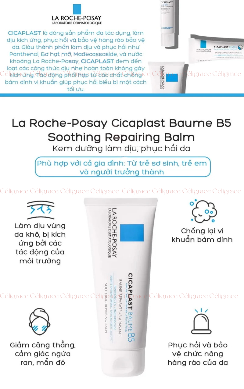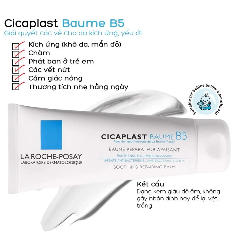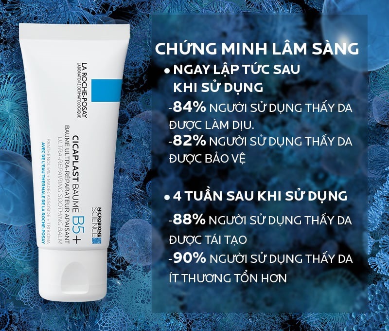 - Cicaplast Baume B5+ có công thức ứng dụng công nghệ hệ vi sinh trên da giúp phục hồi tối ưu sau 1 giờ và bảo vệ hàng rào độ ẩm của da.