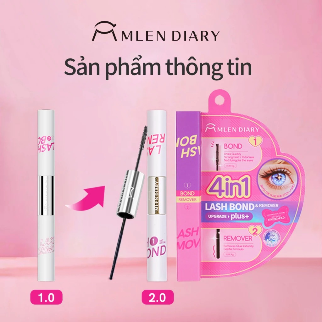 Keo Dán Mi MLEN DIARY 2 Đầu Chải Dạng Mascara 4IN1 Kết Hợp Dung Dịch Tẩy Keo 8g là mascara đến từ thương hiệu MLEN DIARY. Sản phẩm với công thức kép 1 đầu mascara, keo, chất làm cứng và 1 đầu tẩy trang giúp cố định mi giả chắc chắn, không gây nặng mắt, giúp thao tác dán mi dễ dàng, nhanh gọn và tẩy trang tiện lợi. Thiết kế nhỏ gọn, tinh tế, dễ mang theo và sử dụng.