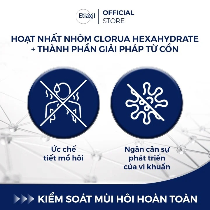 - Với công nghệ độc quyền nhôm Clorua Hexahydrat bao gồm Aluminum Lactate, Aluminum Chloride, Alcohol Denat sẽ tương tác trực tiếp với cùng với lượng nước có trong mồ hôi tạo nên một lớp màng ketatin ở trên bề mặt da từ đó hạn chế, ức chế việc tăng tiết mồ hôi quá mức ở vùng nách