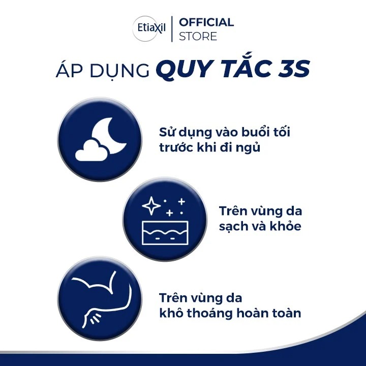 - Vào buổi tối: Sử dụng Etiaxil vào buổi tối trước khi đi ngủ, đây là thời điểm cơ thể được nghỉ ngơi, tuyến mồ hôi sẽ không hoạt động, vì thế đây là lúc khu vực da dưới cánh tay được khô thoáng nhất.
