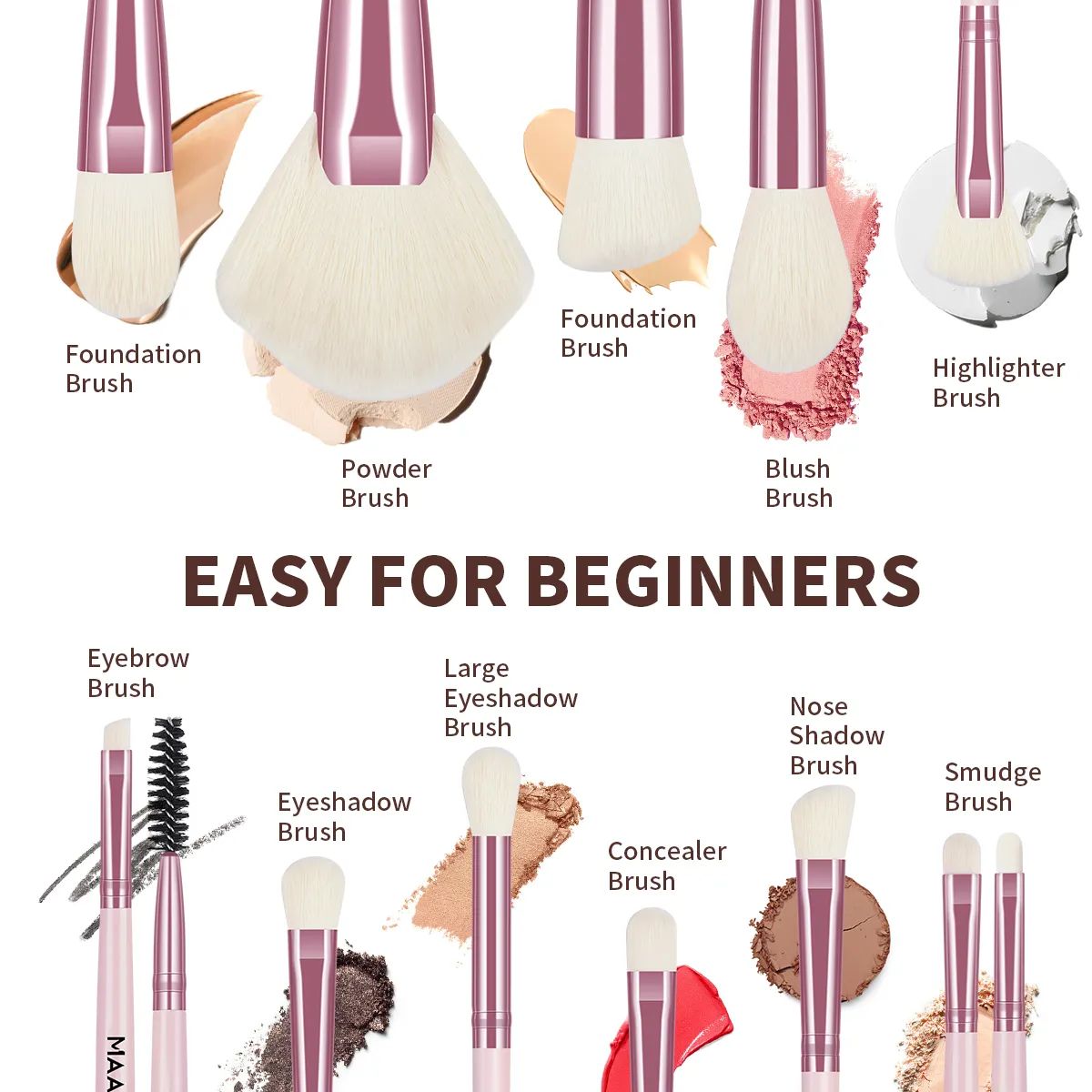 MAANGE - Bộ 11 Cọ Trang Điểm 52160 (Hồng) là cọ trang điểm đến từ thương hiệu MAANGE gồm có 11 cây cọ chuyên biệt dành cho cá nhân phù hợp với các bạn mới bắt đầu học trang điểm hoặc nhu cầu trang điểm cá nhân mỗi ngày.