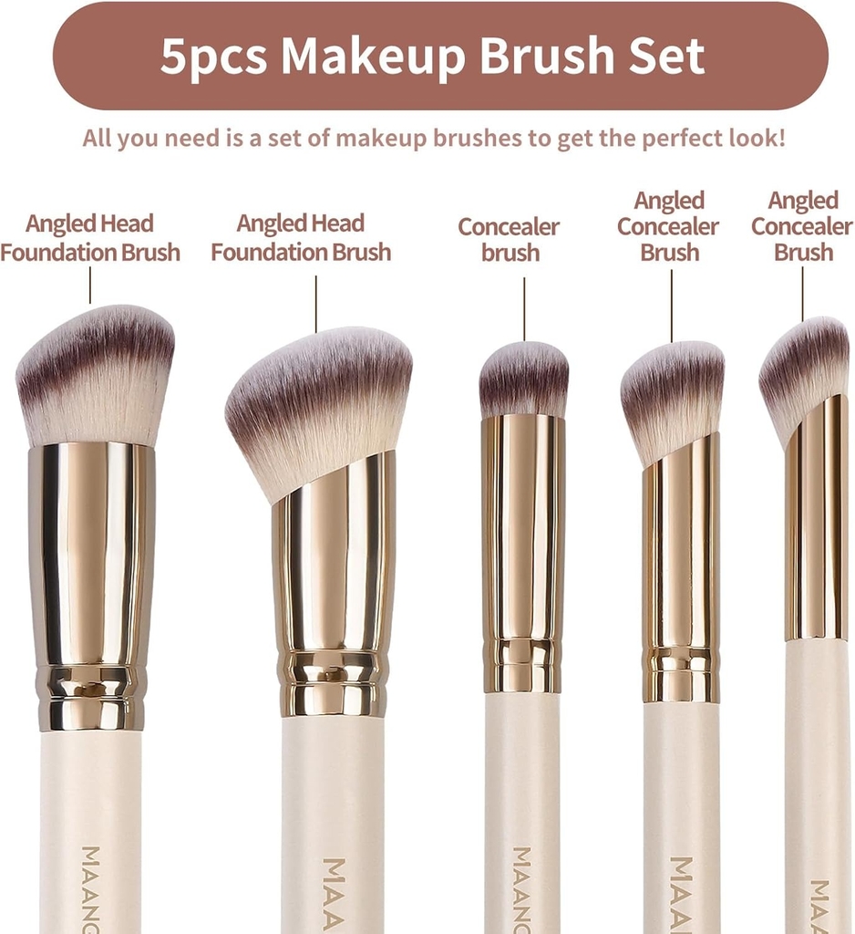 MAANGE - Bộ 5 Cọ Trang Điểm 51737 (Màu Be) là cọ trang điểm đến từ thương hiệu MAANGE gồm có 5 cây cọ chuyên biệt dành cho cá nhân phù hợp với các bạn mới bắt đầu học trang điểm hoặc nhu cầu trang điểm cá nhân mỗi ngày.