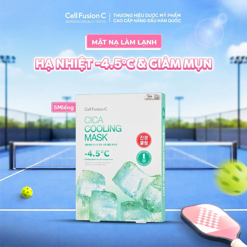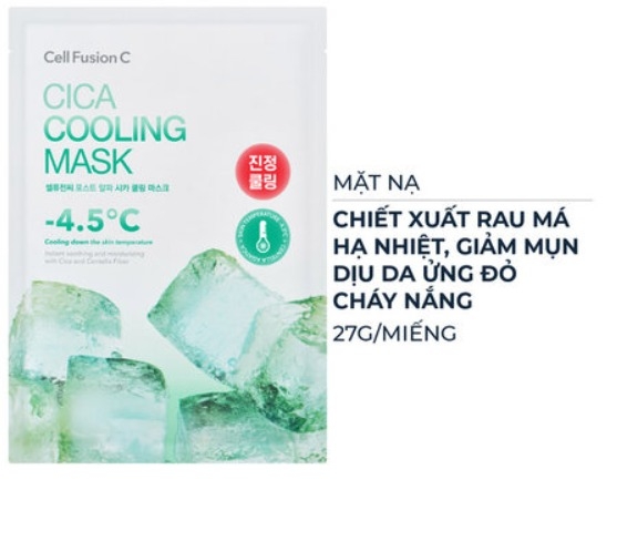 Mặt Nạ Cell Fusion C Rau Má Giảm Mụn Dịu Da Cica Cooling Mask là sản phẩm mặt nạ giấy hạ nhiệt đến từ thương hiệu Cell Fusion Cn- Hàn Quốc, với 100.000ppm chiết xuất rau má giúp làm dịu nhanh tình trạng nóng rát, mẩn đỏ do tác động từ nhiệt độ cao hoặc kích ứng. Sợi mặt nạ chiết xuất từ rau má tăng cường khả năng làm dịu và hỗ trợ giảm viêm, kết hợp Tea Tree và PHA giúp hạn chế mụn tái phát, mang lại làn da tươi mát và sạch khỏe.