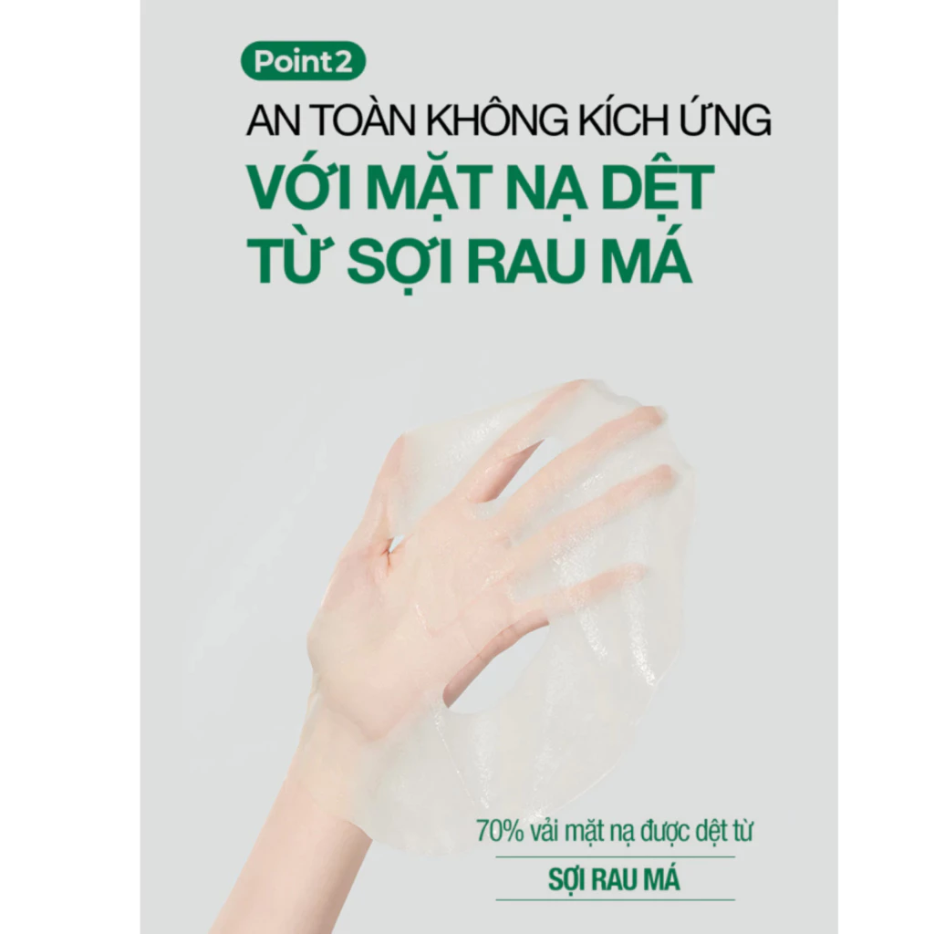 🍀 Sợi mặt nạ làm từ rau má giúp tăng cường khả năng làm dịu da, đồng thời hỗ trợ bảo vệ da khỏi các tác nhân gây khó chịu từ môi trường.