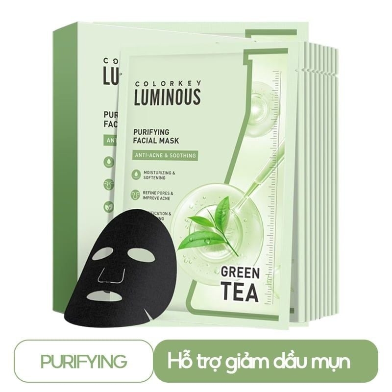 - Mặt Nạ Colorkey Luminous Purifying Facial Mask 25ml (Màu Xanh): Hỗ Trợ Giảm Dầu Mụn Từ Chiết Xuất Trà Xanh & BHA