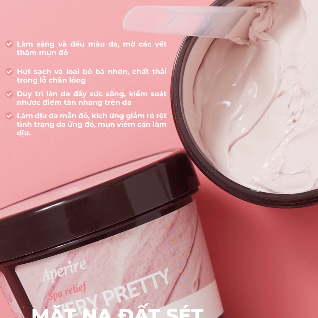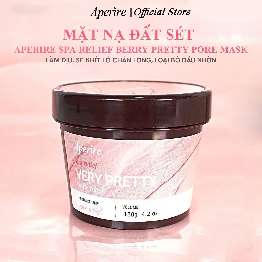 Mặt Nạ Đất Sét Aperire Quả Mọng Thải Độc, Làm Sáng Da Spa Relief Berry Pretty Pore Mask là sản phẩm mặt nạ rửa đến từ thương hiệu mỹ phẩm Aperire đến từ Hàn Quốc. Sản phẩm với thành phần chính đất sét hút sạch dầu thừa, bụi bẩn, giúp lỗ chân lông thông thoáng. Ngoài ra mặt nạ chứa các chiết xuất thiên nhiên giúp làm dịu da, giảm kích ứng, dưỡng da sáng mịn màng