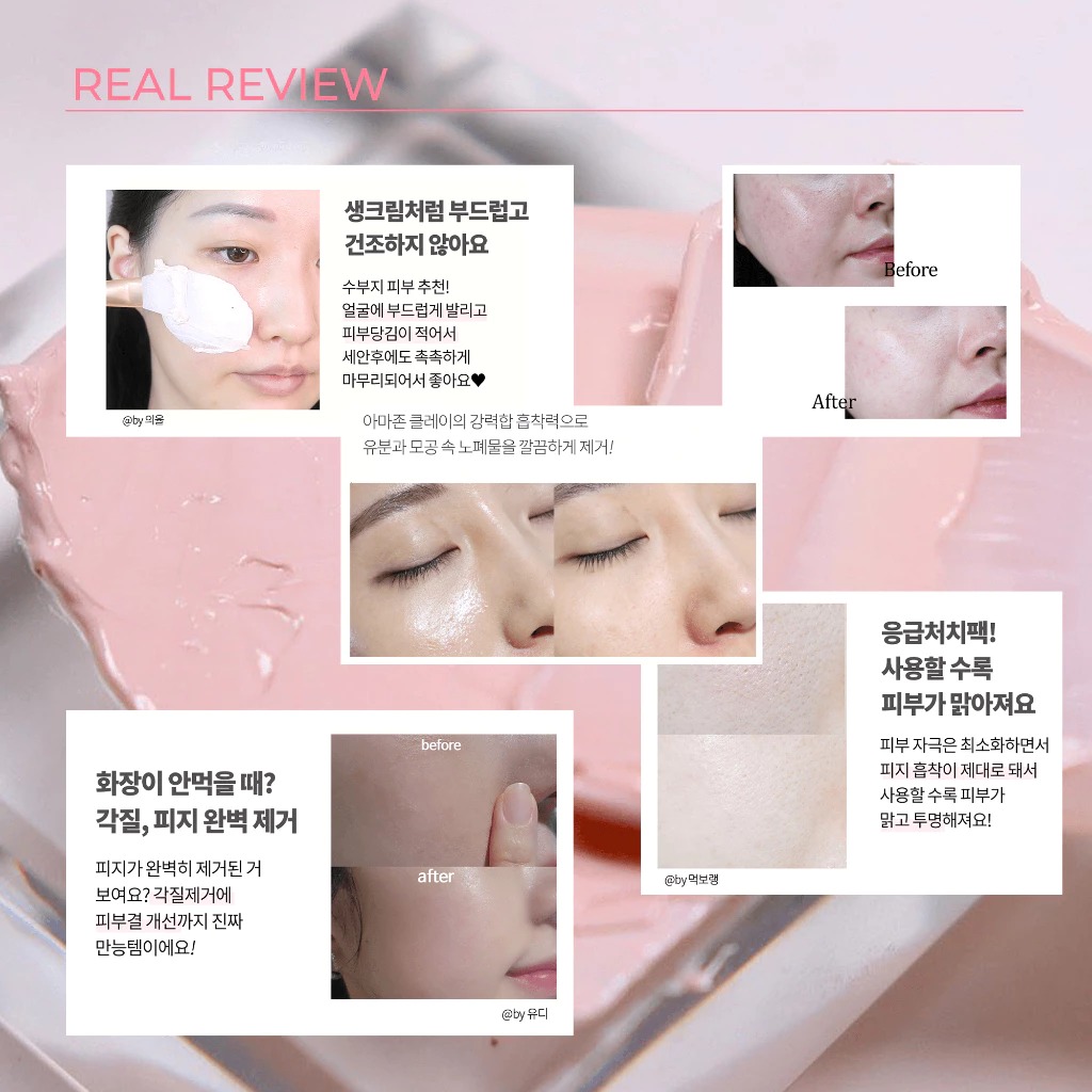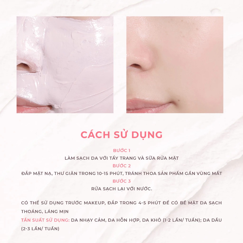 🍀 Đất sét trắng Amazon 10.000ppm làm sạch sâu và loại bỏ các tế bào chết, mụn đầu đen, sợi bã nhờn.