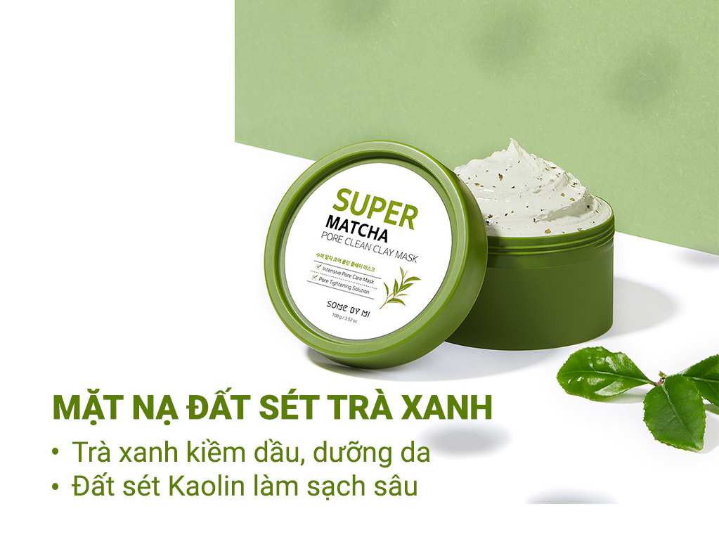Mặt Nạ Đất Sét Trà Xanh Some By Mi Giúp Làm Sạch, Thu Nhỏ Lỗ Chân Lông Super Matcha Pore Clean Clay Mask 100g là mặt nạ rửa của thương hiệu Some By Mi chứa các chiết xuất từ trà xanh, nước tinh khiết, lá cây,...lành tính giúp bổ sung BHA nhẹ nhàng, làm sạch lớp da chết, làm dịu làn da hiệu quả giúp da trở nên mềm mại và mịn màng hơn.