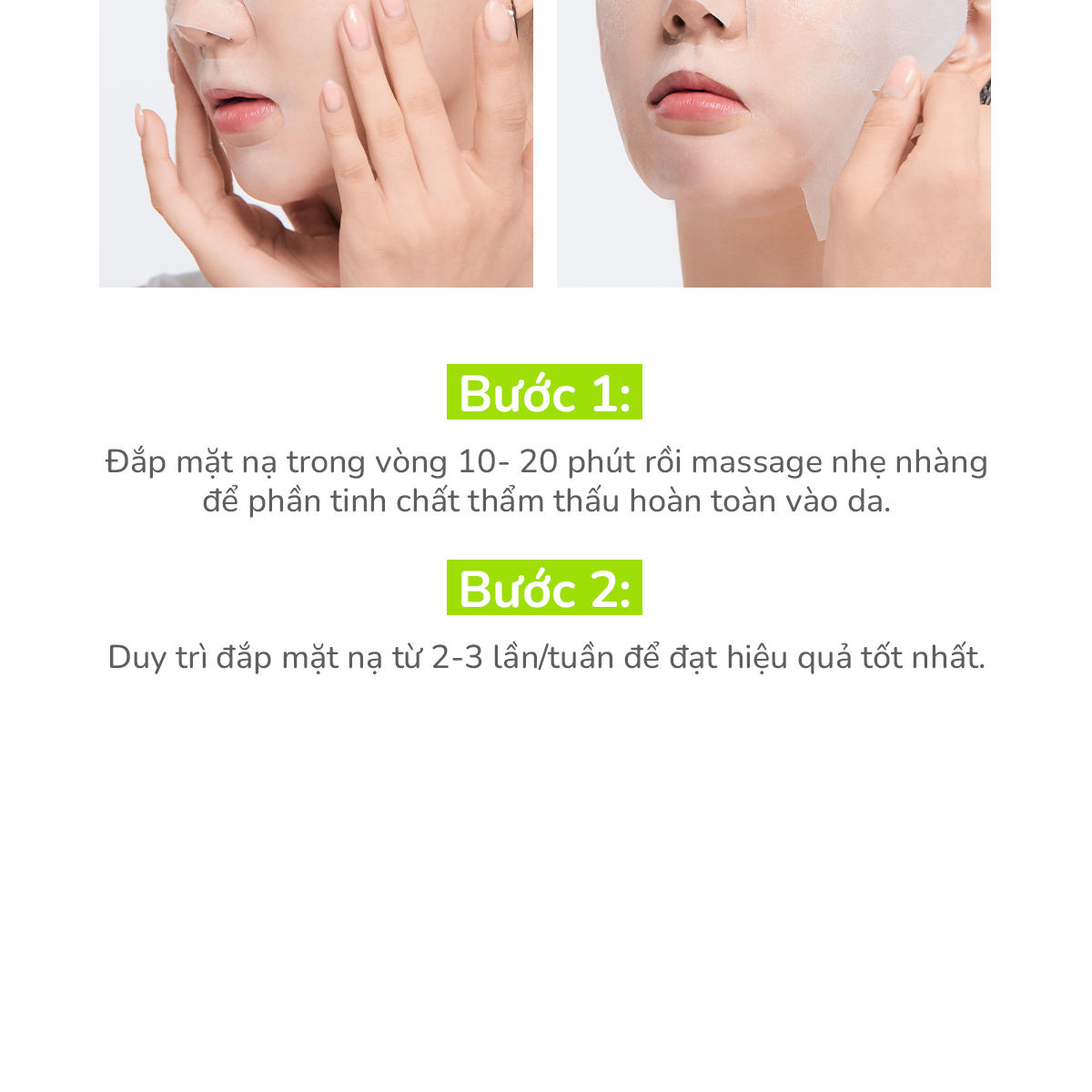 🍀 Cấu tạo: Mặt nạ được làm từ Cellulose tự nhiên tăng tối đa khả năng bám dính, cấu tạo 3 lớp liên tục cung cấp dưỡng chất cô đặc cho da.