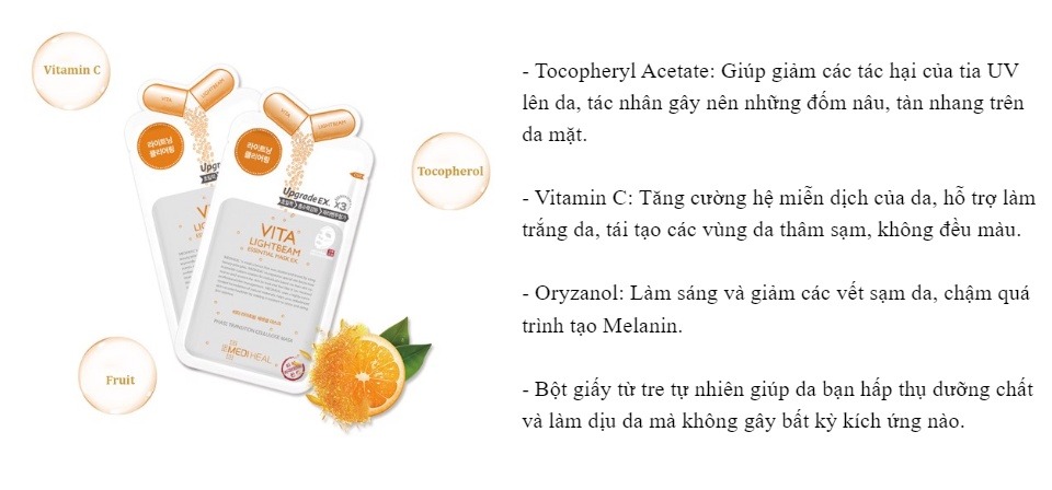 4. Mediheal Essential Mask - Vita - giúp làm mờ các vết thâm sạm, tàn nhang, tăng cường sức đề kháng cho da. Dành cho làn da thâm sạm, không đều màu.