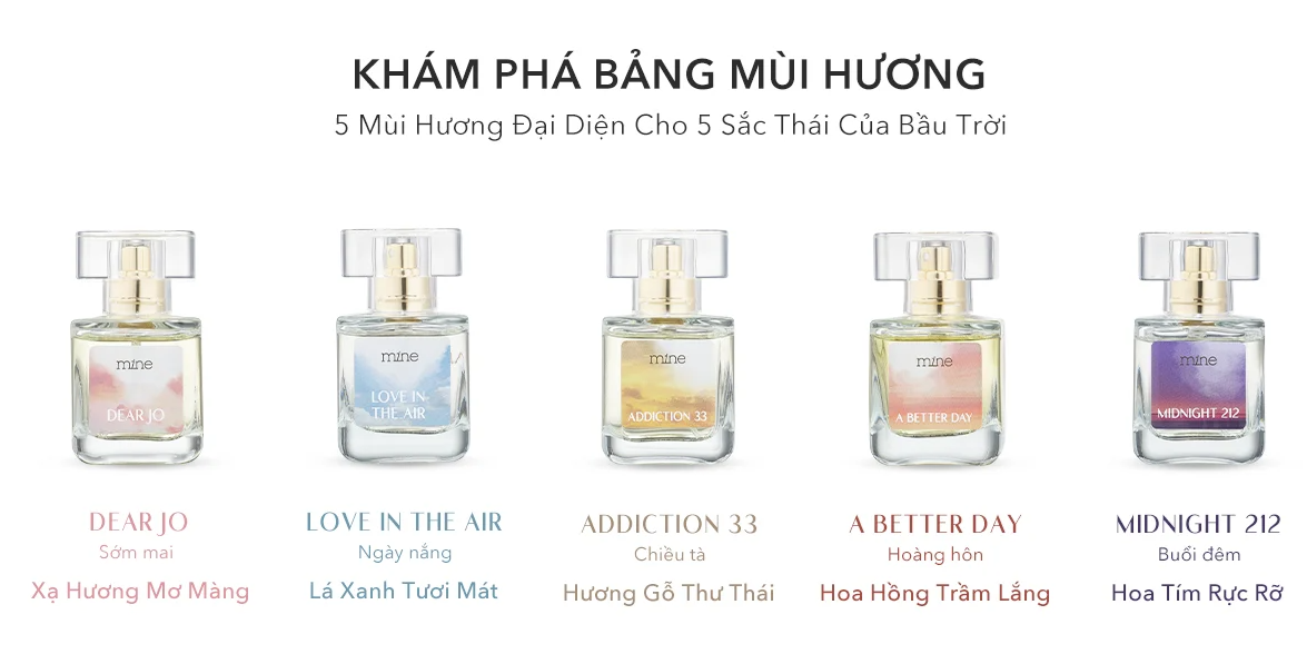🌟 Hiện Nước Hoa Mine Eau De Parfum có 5 mùi hương sau: