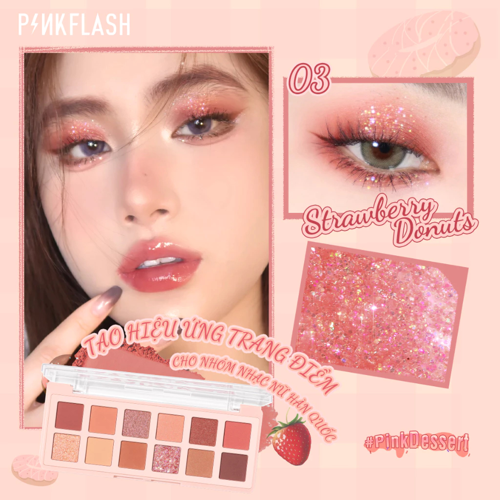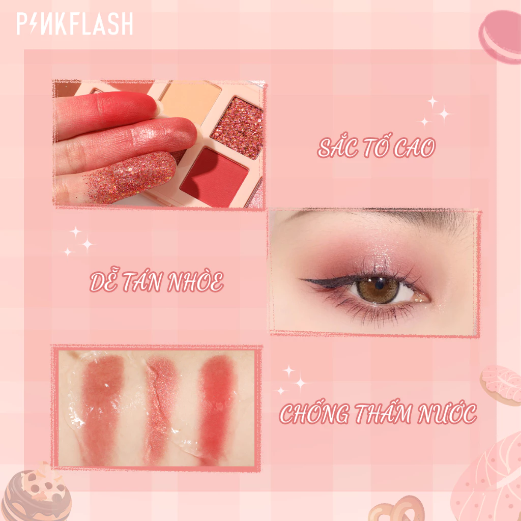 Phấn Mắt PINKFLASH 12 Ô Lâu Trôi Có Nhũ Ánh Kim Pink Dessert Pro Touch Eyeshadow Palette PF-E15 của PINKFLASH có công thức sắc tố cao có khả năng lên màu mạnh mẽ, dễ dàng thoa và đều màu, mang lại độ bám dính tuyệt vời, dễ dàng pha trộn với các kết cấu khác nhau, mang lại lớp trang điểm mắt mỏng manh một cách hoàn hảo với nhiều kiểu trang điểm mắt các lớp.