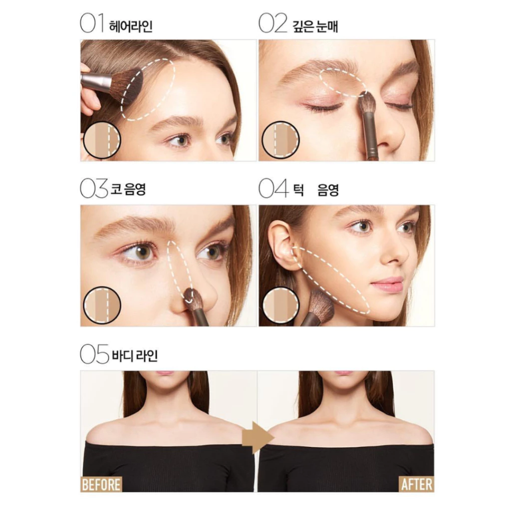 - Màu nâu tối: Đánh vùng xương quai hàm và xung quanh khuôn mặt, giúp tạo cảm giác nhỏ gọn và thanh thoát.