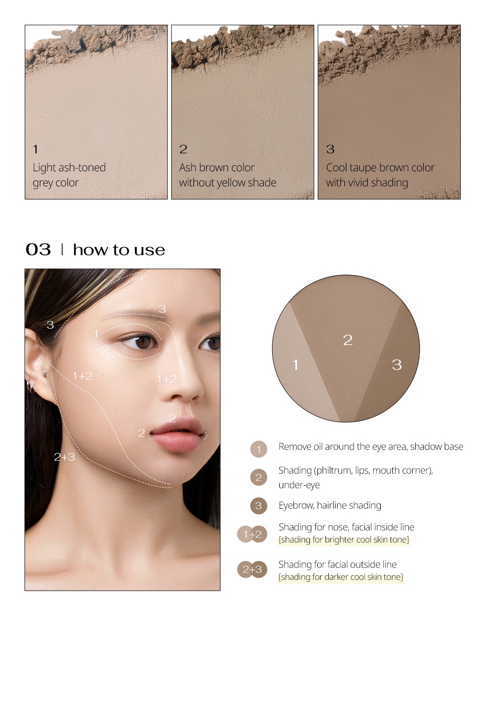 🍀Thiết kế 3 tone màu: Sản phẩm có ba màu từ nhạt đến đậm, cho phép linh hoạt sử dụng cho nhiều vùng khác nhau trên khuôn mặt.