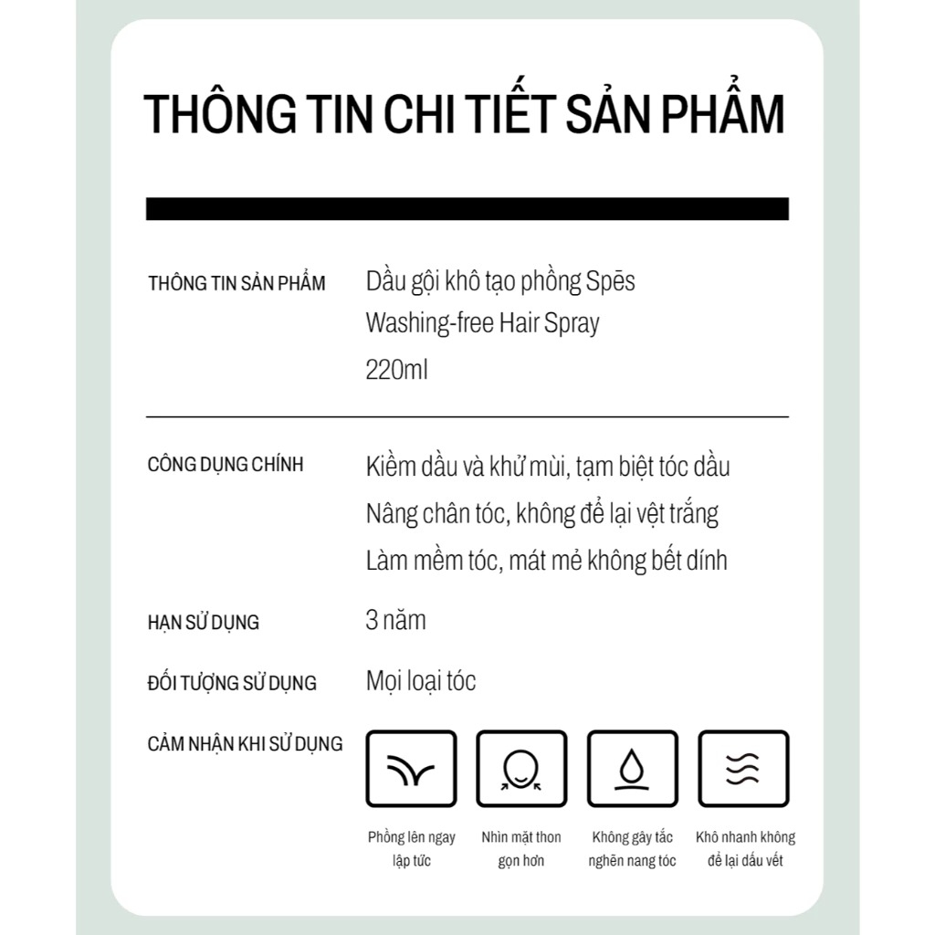 🍀 Đa nhiệm 2 trong 1: Làm sạch chân tóc + dưỡng tóc + tạo hương – tất cả chỉ trong một bước xịt nhanh.