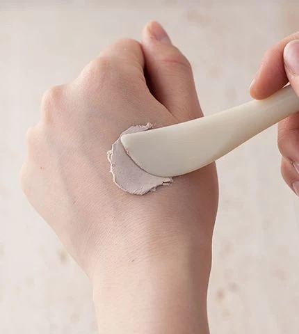 - Lấy 1 lượng kem vừa đủ lên mặt rồi dùng muỗng tán đều khắp gương mặt nhé.