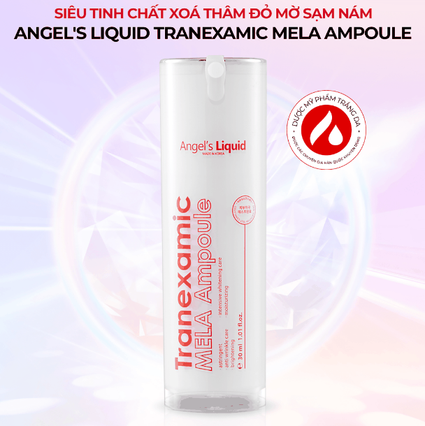 Siêu Tinh Chất Angel's Liquid Xoá Thâm Đỏ, Mờ Sạm Nám Tranexamic Mela Ampoule 30ml là tinh chất đến từ thương hiệu Angel's Liquid giúp mờ nám chuyên sâu, cải thiện lại dấu hiệu lão hóa sớm của làn da, làm đầy các nếp nhăn hiệu quả, thúc đẩy sản sinh collagen, tăng cường độ đàn hồi cho da gấp 3 lần. Đặc biệt, giúp hỗ trợ dưỡng trắng, đều màu da tối ưu, duy trì cho bạn một làn da trắng khoẻ như kim cương.
