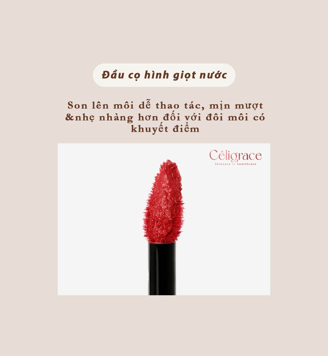 🍀Son có kết cấu mướt mịn, khi lướt trên môi tạo cảm giác phủ đều mà không làm lộ nếp nhăn hay vân môi