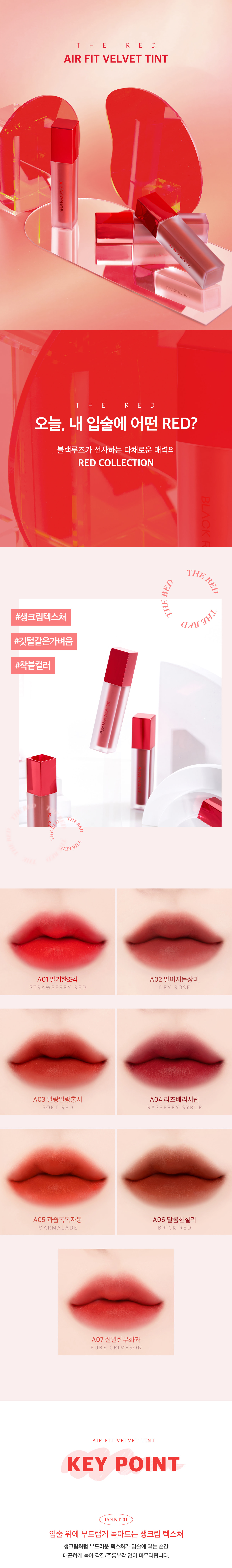 Black Rouge Air Fit Velvet Tint (The Red) là bộ sưu tập đầu tiên của dòng son kem đình đám đến từ Black Rouge Hàn Quốc. 7 màu sắc thời thượng hòa cùng xu hướng trang điểm ấn tượng đang cực kì thịnh hành trong thời gian gần đây