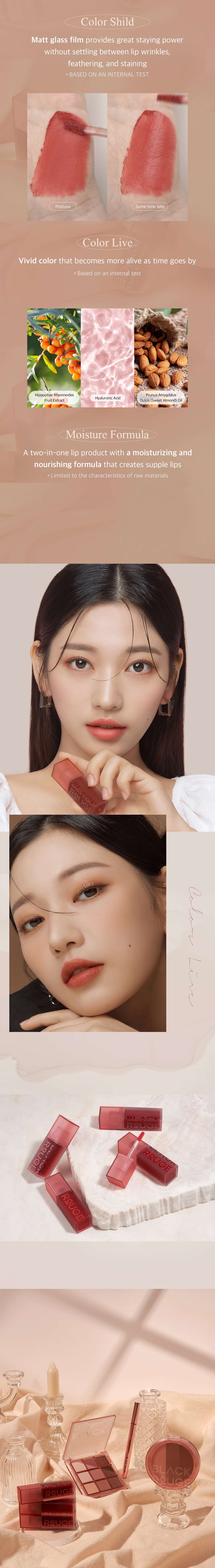 Black Rouge là thương hiệu đến từ Hàn Quốc được ra đời vào năm 2016, từ khi ra mắt thương hiệu Black Rouge đã chinh phục người tiêu dùng bởi chất lượng và sự đột phá mới mẻ trong từng sản phẩm. Đến năm 2018, Black Rouge thực sự trở thành thương hiệu được yêu thích tại Hàn Quốc. Các sản phẩm của Black Rouge được chắt lọc tinh tuý từ ưu điểm của những dòng item đình đám tại Hàn Quốc nhằm mang lại hai yếu tố cốt lõi: SÁNG TẠO & ĐA NĂNG
