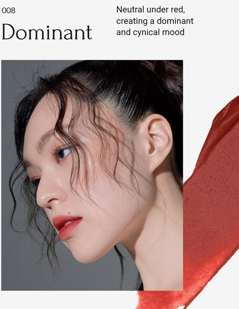 • 008 – Dominant đỏ lạnh: đây là màu rất tôn da và trắng răng, phù hợp với nhiều gam màu da và đem lại sự quyến rũ đầy sức hút mà không lo bị già