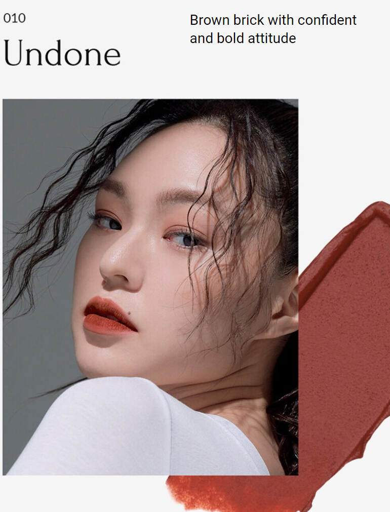 • 010 – Undone đỏ nâu: vừa năng động, tinh tế lại vừa thời thượng, nóng bỏng là một trong những đặc điểm của tone màu này. Vì thế mà nàng vừa có thể chọn để đi làm, đi học hoặc trong những dịp đi date cũng rất xinh xắn.