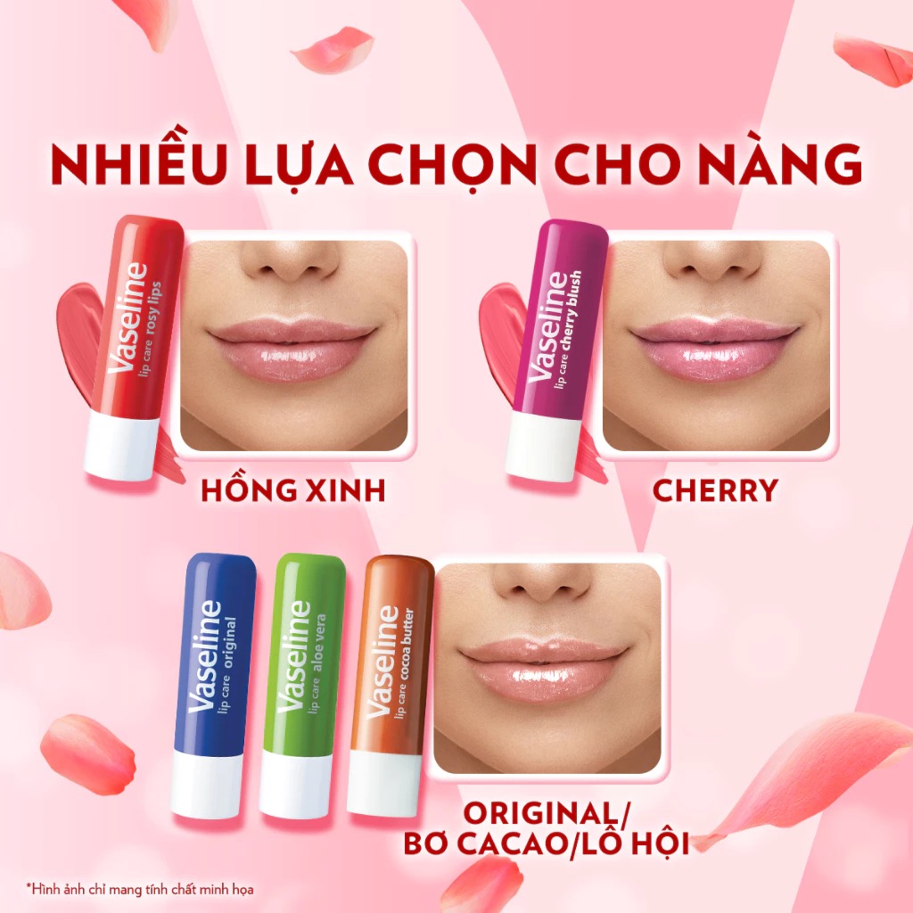 Son Thỏi Vaseline Dưỡng Ẩm, Chống Nứt Nẻ Môi Có Màu, Không Màu Lip Therapy Dạng Thỏi là dòng son dưỡng của thương hiệu Vaseline chứa nhiều thành phần thiên nhiên như Petroleum jelly, chiết xuất lô hội, cacao và bơ hạt mỡ giúp bảo vệ môi cho môi mềm mại, sáng hơn, giúp môi căng tràn sức sống, mềm mại tự nhiên.