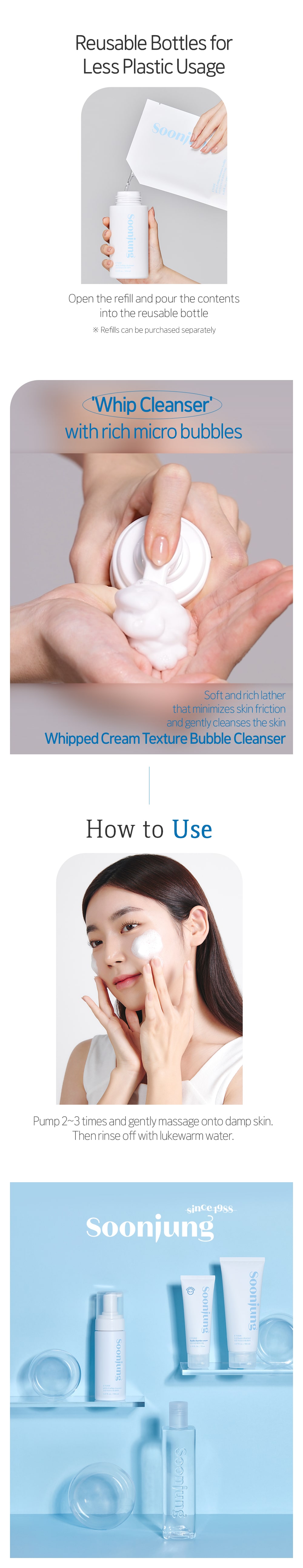 🍀Phù hợp trên mọi loại da, kể cả da nhạy cảm, sau khi làm sạch vẫn giữ được một độ ẩm tự nhiên. Với những bạn đang sở hữu làn da nhạy cảm, dễ kích ứng hoặc đang tổn thương thì Soon Jung pH 6.5 Whip Cleanser là một lựa chọn lý tưởng. Kết cấu này sẽ không để bạn phải ma sát quá nhiều trên da khi làm sạch. Bởi đây là một loại sữa rửa mặt dạng bọt kem với lớp bong bóng mềm xốp, giúp bạn cuốn đi các loại bụi bẩn, cặn trang điểm, bã nhờn trên da ngay khi bạn bắt đầu xoa chúng lên bề mặt da một cách nhẹ nhàng