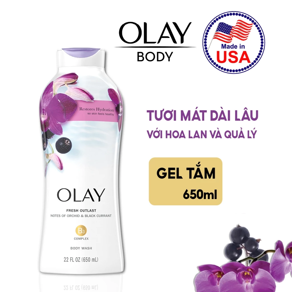 Sữa Tắm Olay Body Wash là dòng sản phẩm sữa tắm nhập khẩu từ Mỹ thuộc thương hiệu Olay, giúp nhẹ nhàng làm sạch và loại bỏ tạp chất trên da hàng ngày, đồng thời nuôi dưỡng làn da khỏe mạnh với phức hợp B3 Complex - ngăn ngừa tổn thương và các dấu hiệu lão hóa da.